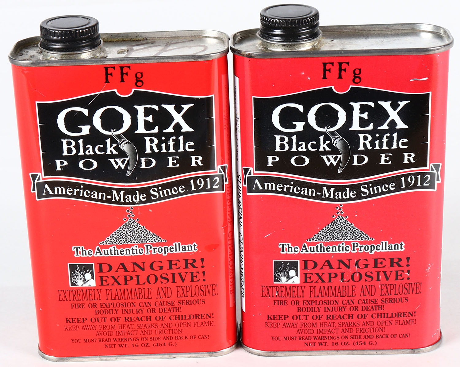 Lot of 2 Goex powder cans, both empty. Grade: Excellent ++ - Value: 2 to 20