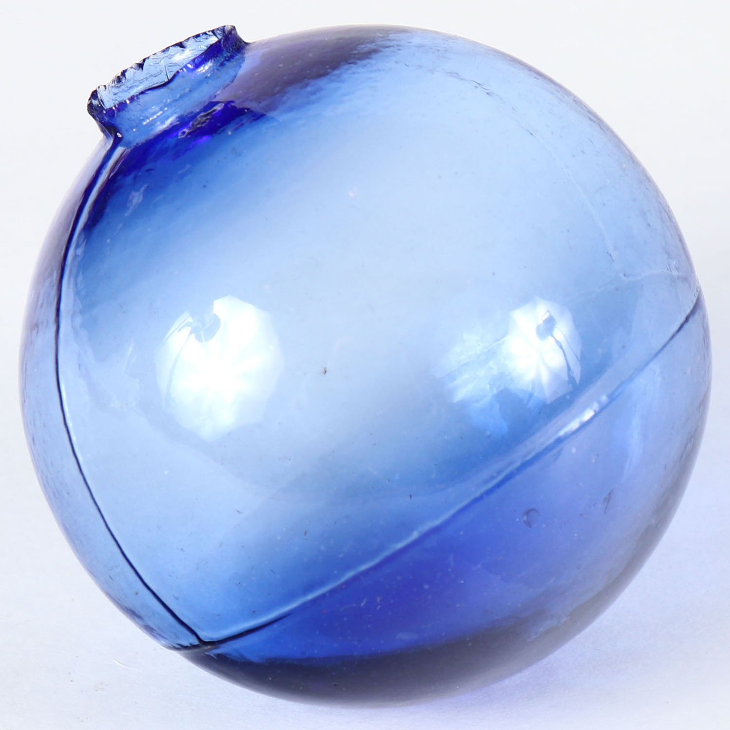 RARE! Blue Glass Target Ball, smooth design, 3 piece, small neck, wonderful condition. Grade: Excellent - Value: 100 to 500