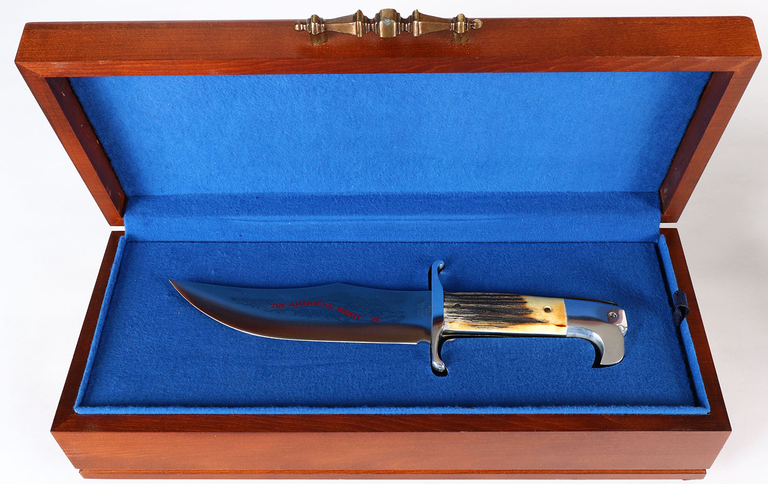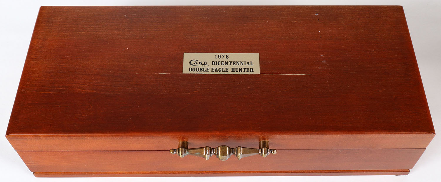 RARE! 1976 Case Bicentennial Double-Eagle Hunter, ''American Spirt Double Eagle'', #2044, with leather sheath and wood display box and shipping box, has certificate of authentication. Grade: MINT - Value: 200 to 400