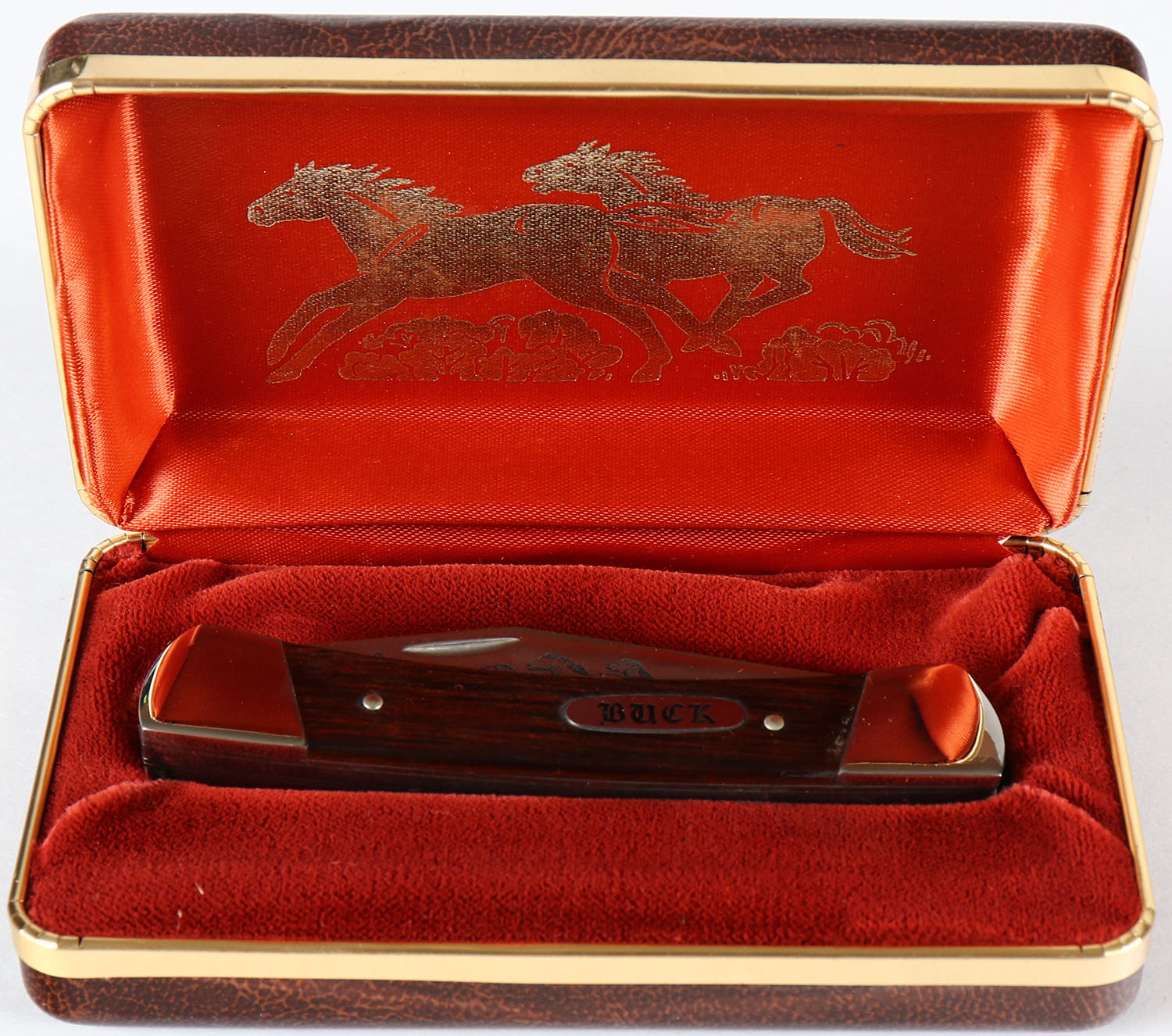 Buck knives Black Mustang folding knife, in presentation case, with certificate, #1946, 3 blade, 2 1/2'' longest blade. Grade: Excellent ++ - Value: 40 to 80