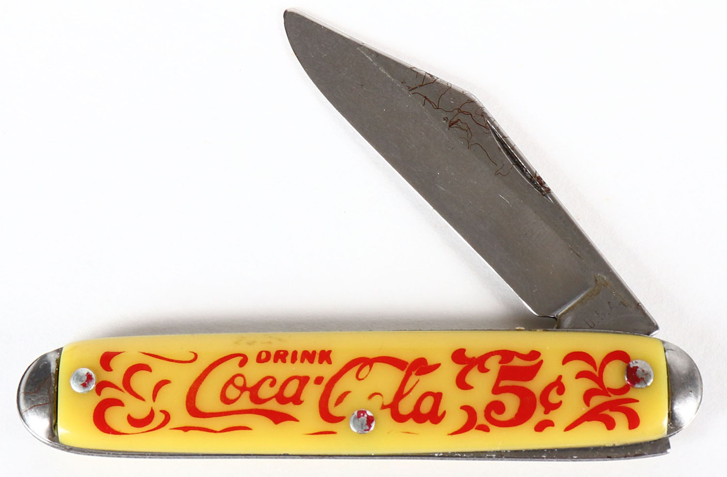 Coca-Cola folding knife, 2'' blade. celliod grip. Grade: Excellent - Value: 10 to 50