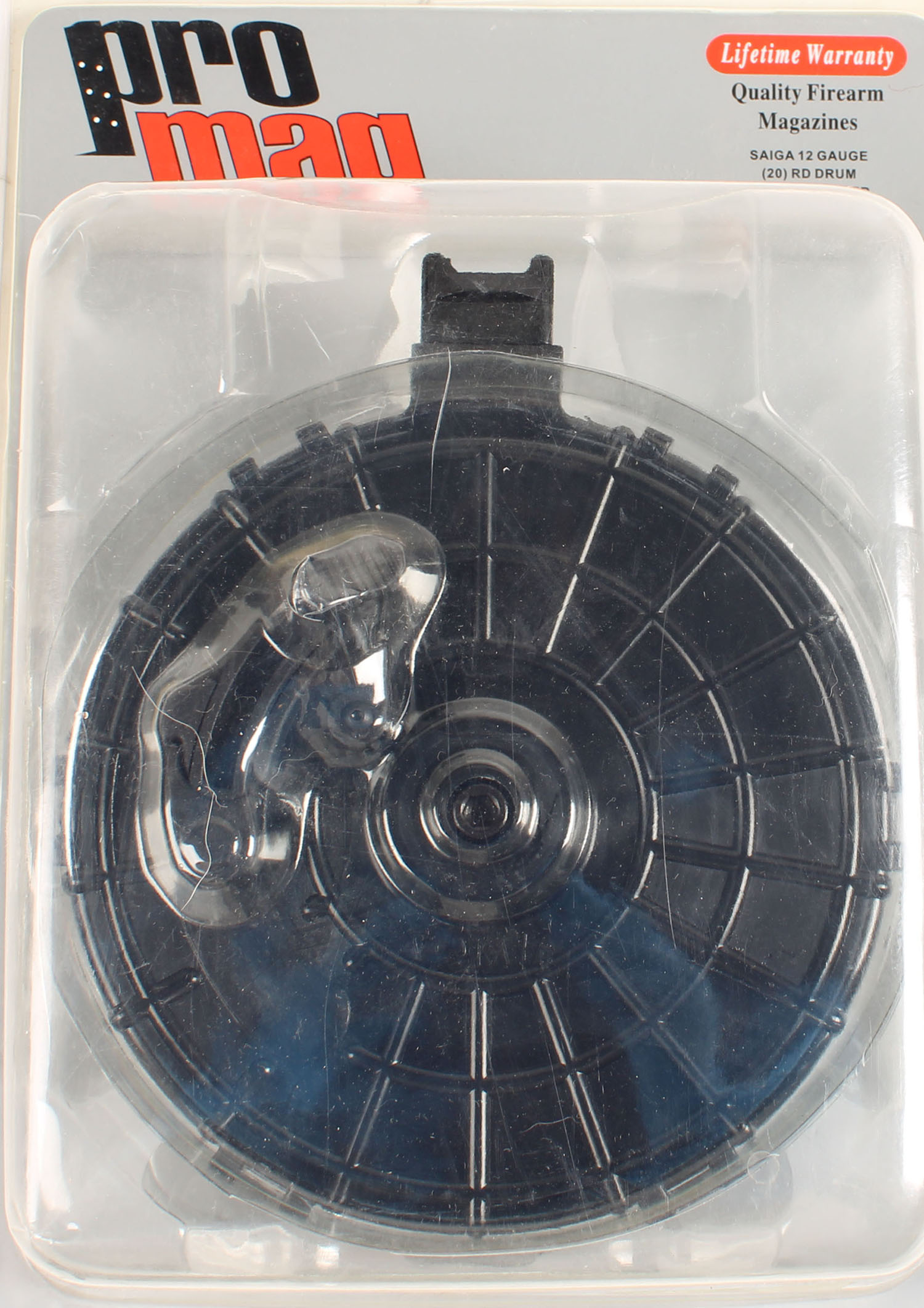 Pro Mag, Saiga 12 Ga, 20Rd. Drum mag, in its original packaging. Grade: Excellent + - Value: 60 to 120