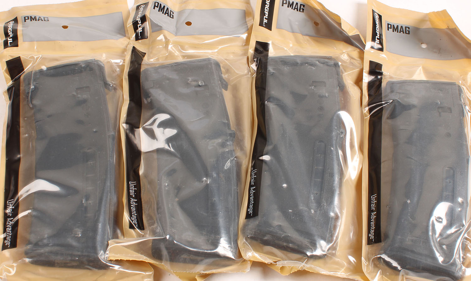 Lot of four, Magpul AR-15 Emags, Black plastic, 30Rd. Mags, 5.56/.223, all sealed in the original packaging. Grade: Excellent ++ - Value: 30 to 60