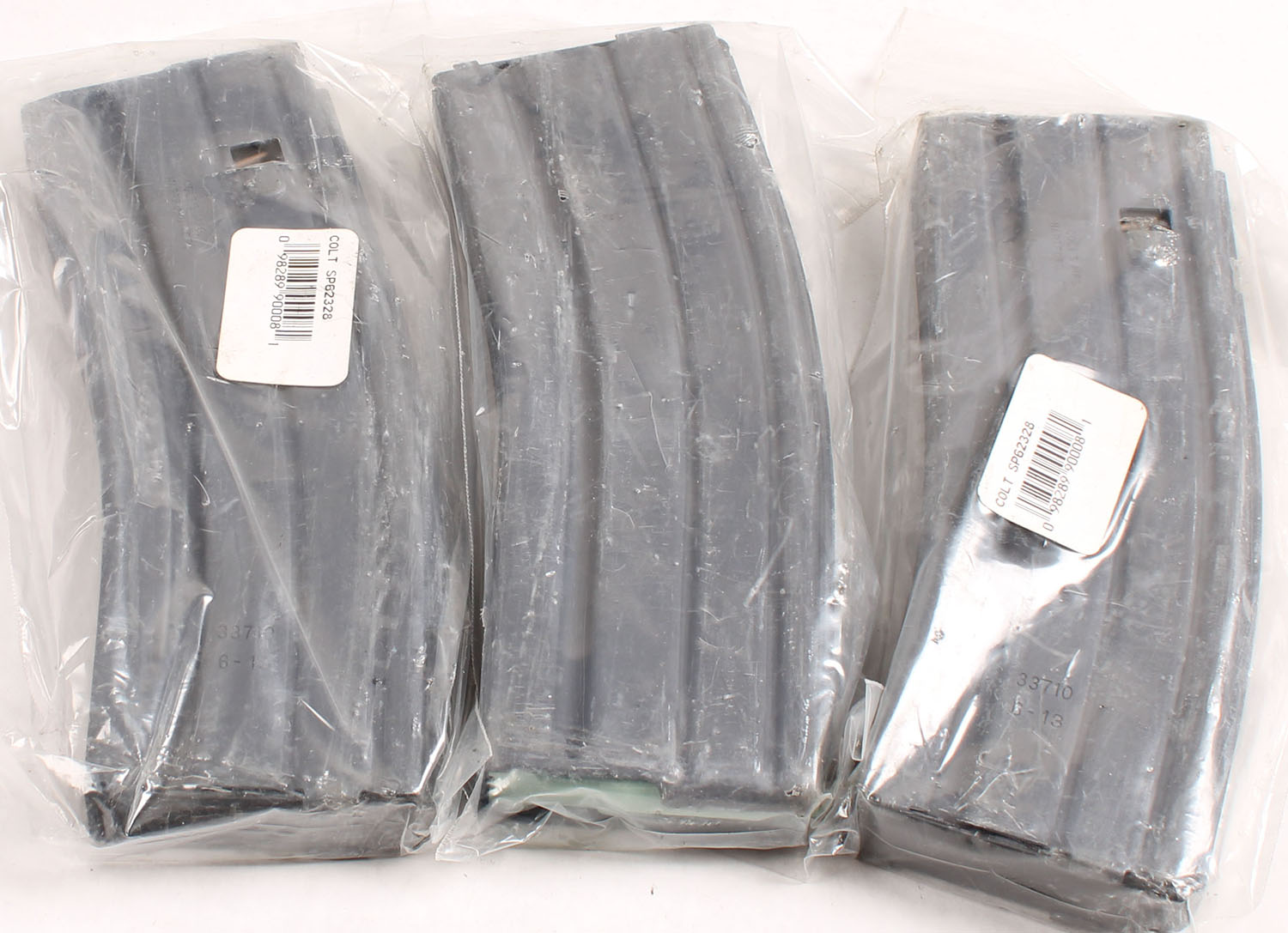 Lot of three, Colt AR-15 aluminum 30Rd. 5.56/.223 Mags, all in original packaging. Grade: Excellent ++ - Value: 20 to 50