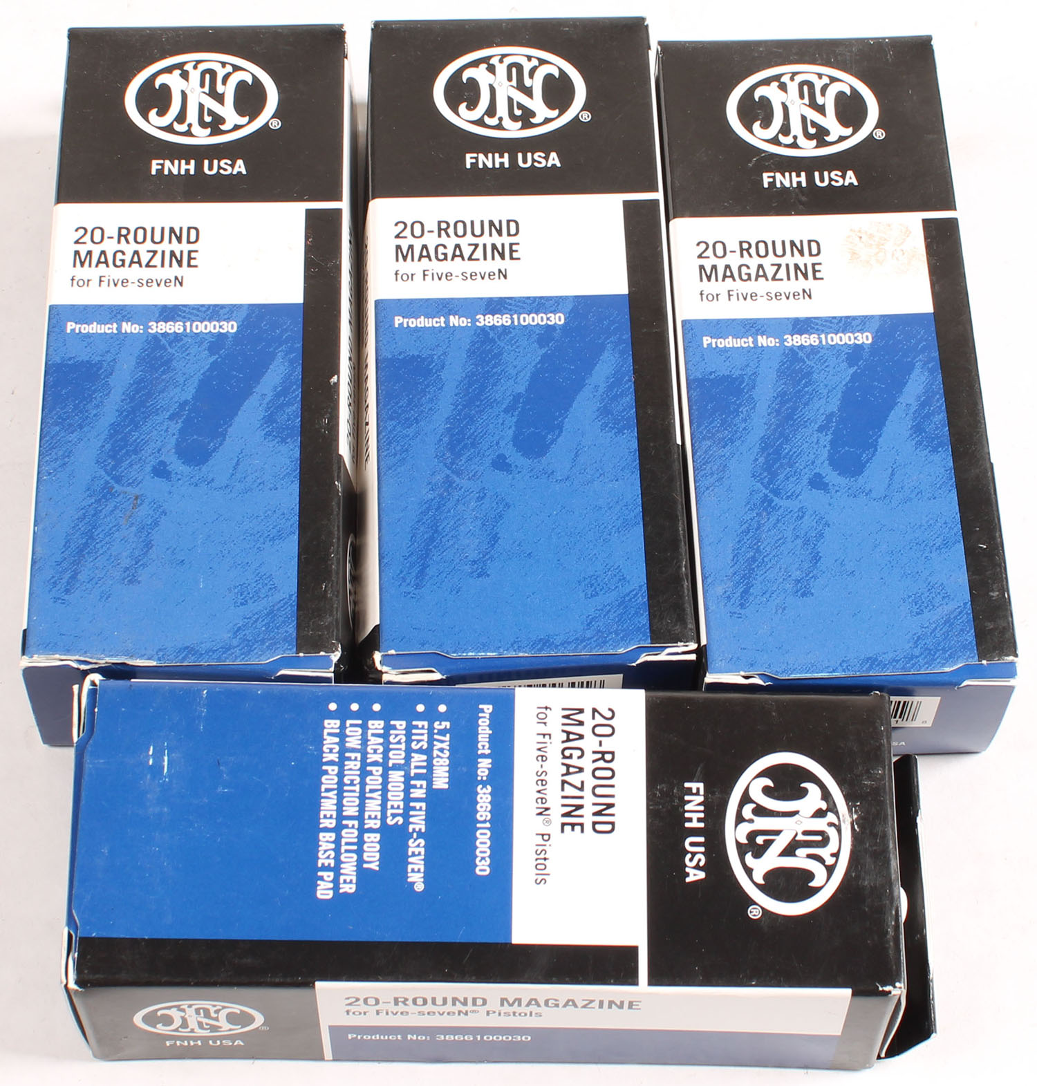 Lot of four, FN Five-Seven 20Rd. Mags, all in original boxes. Grade: Excellent - Value: 50 to 150