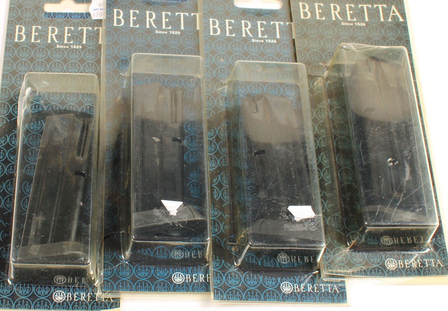 Lot of four 9mm Beretta mags, three 13Rd. Mags for a model Px4 compact, & one 15Rd. Mag for a Px4, all in original packaging. Grade: Excellent - Value: 60 to 120