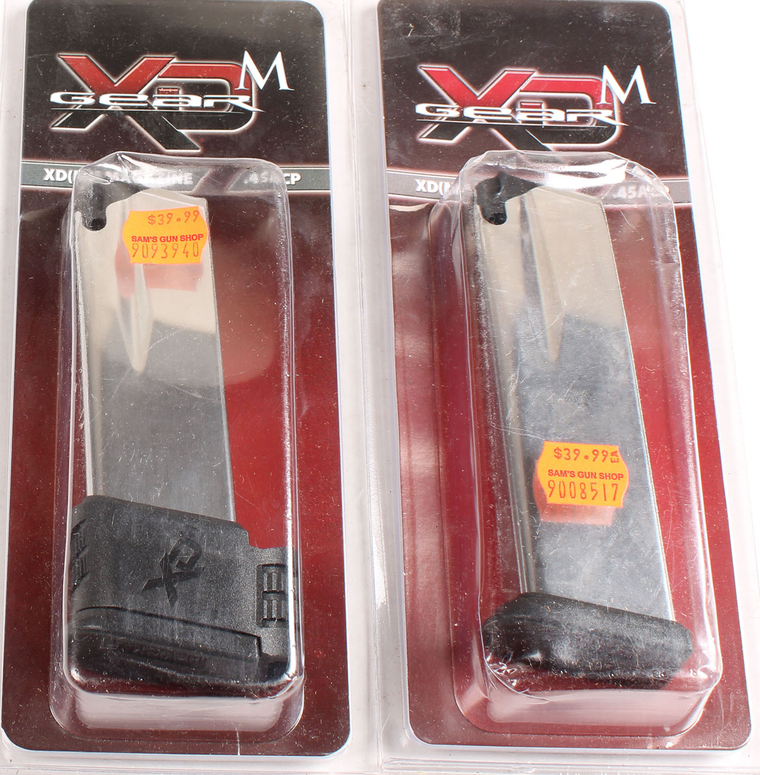 Lot of two, XD(M) .45 ACP 13 RD. Mags, one comes with #2 X-tension, all in original packaging. Grade: Excellent ++ - Value: 40 to 80