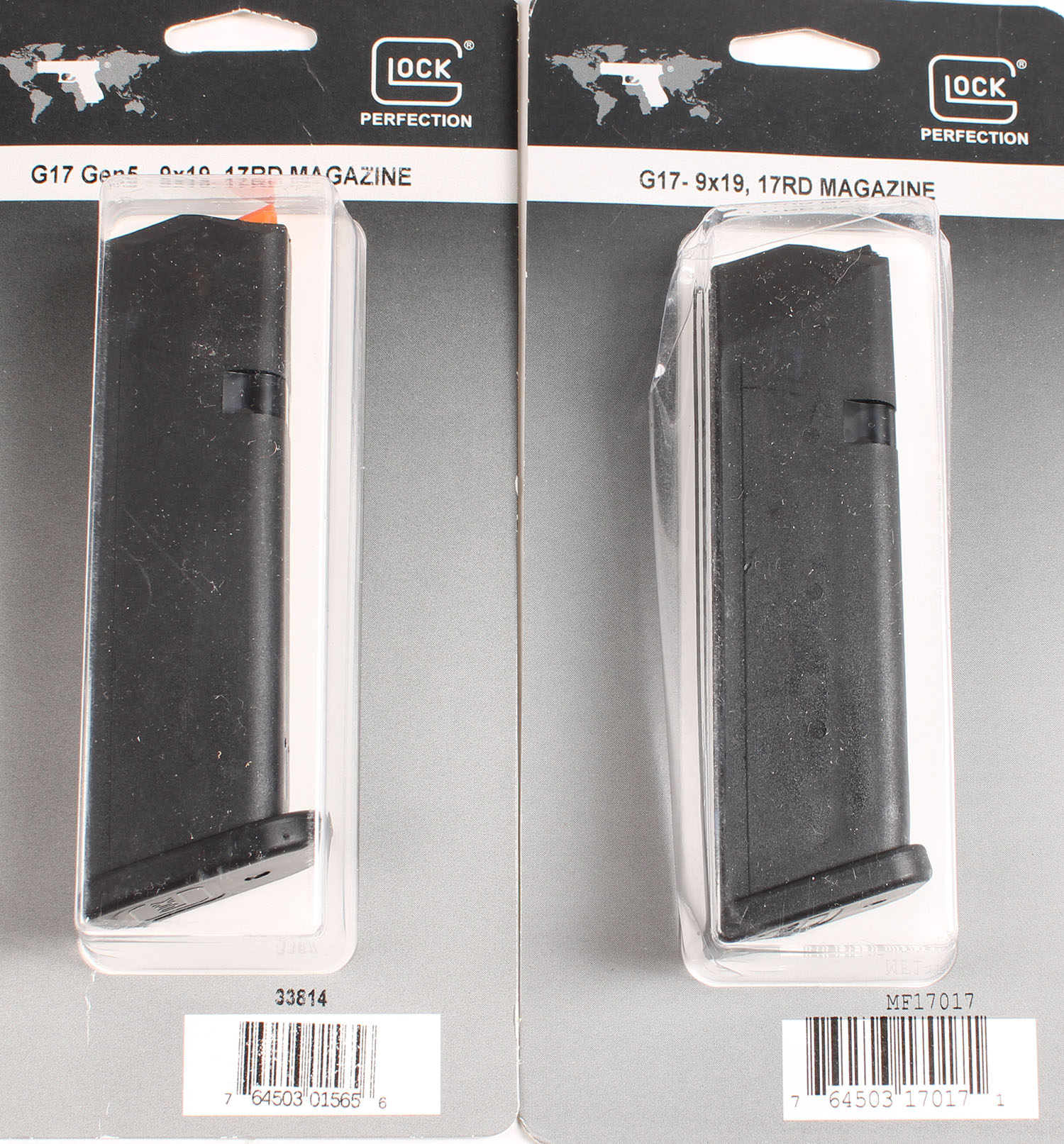 Lot of two, Glock Model 17, 9mm 17Rd. Mags, both in original packaging. Grade: Excellent - Value: 30 to 60