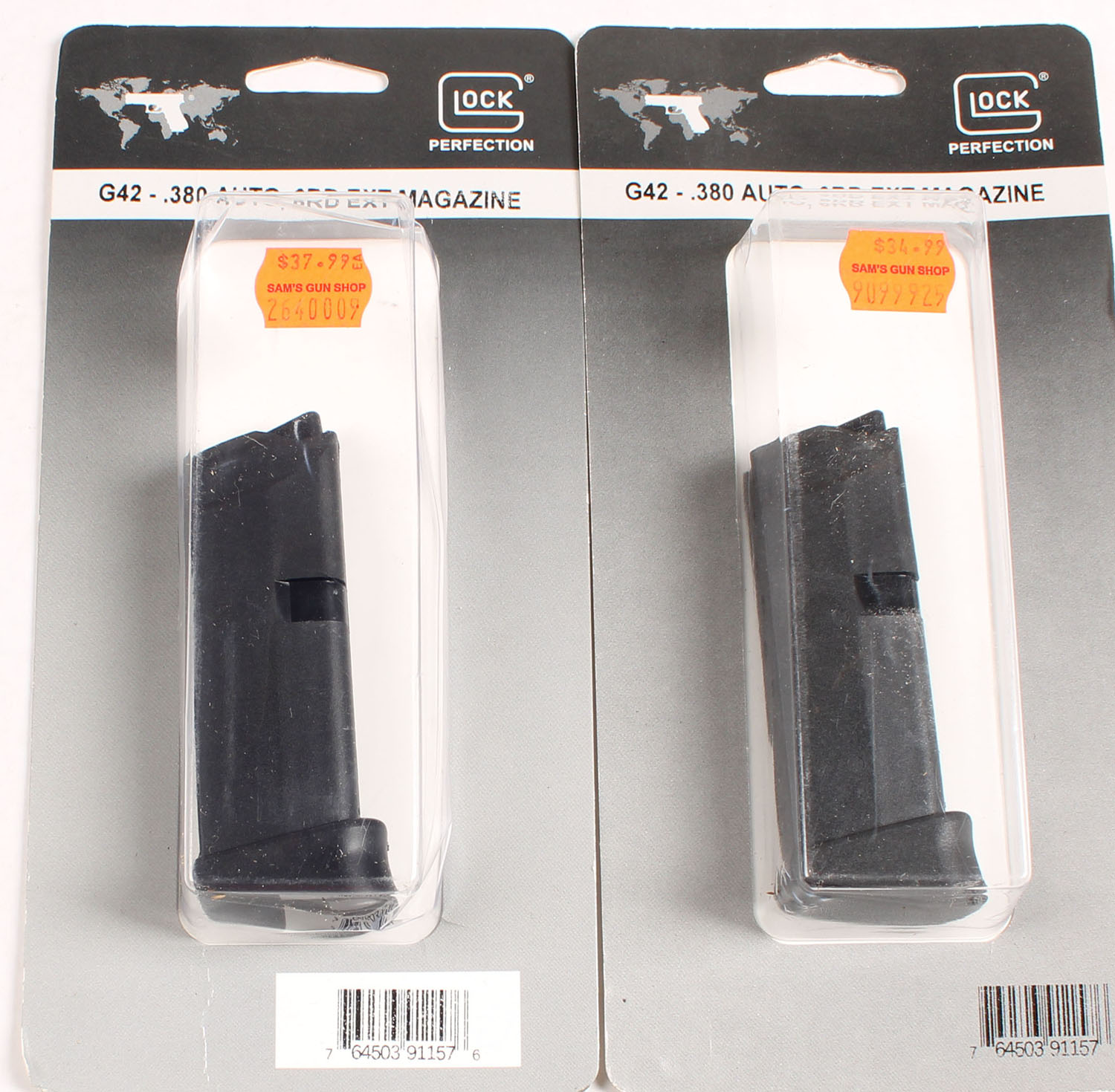 Lot of two, Glock Model 42, .380 Auto 6Rd. Mags, both in original packaging. Grade: Excellent - Value: 40 to 60
