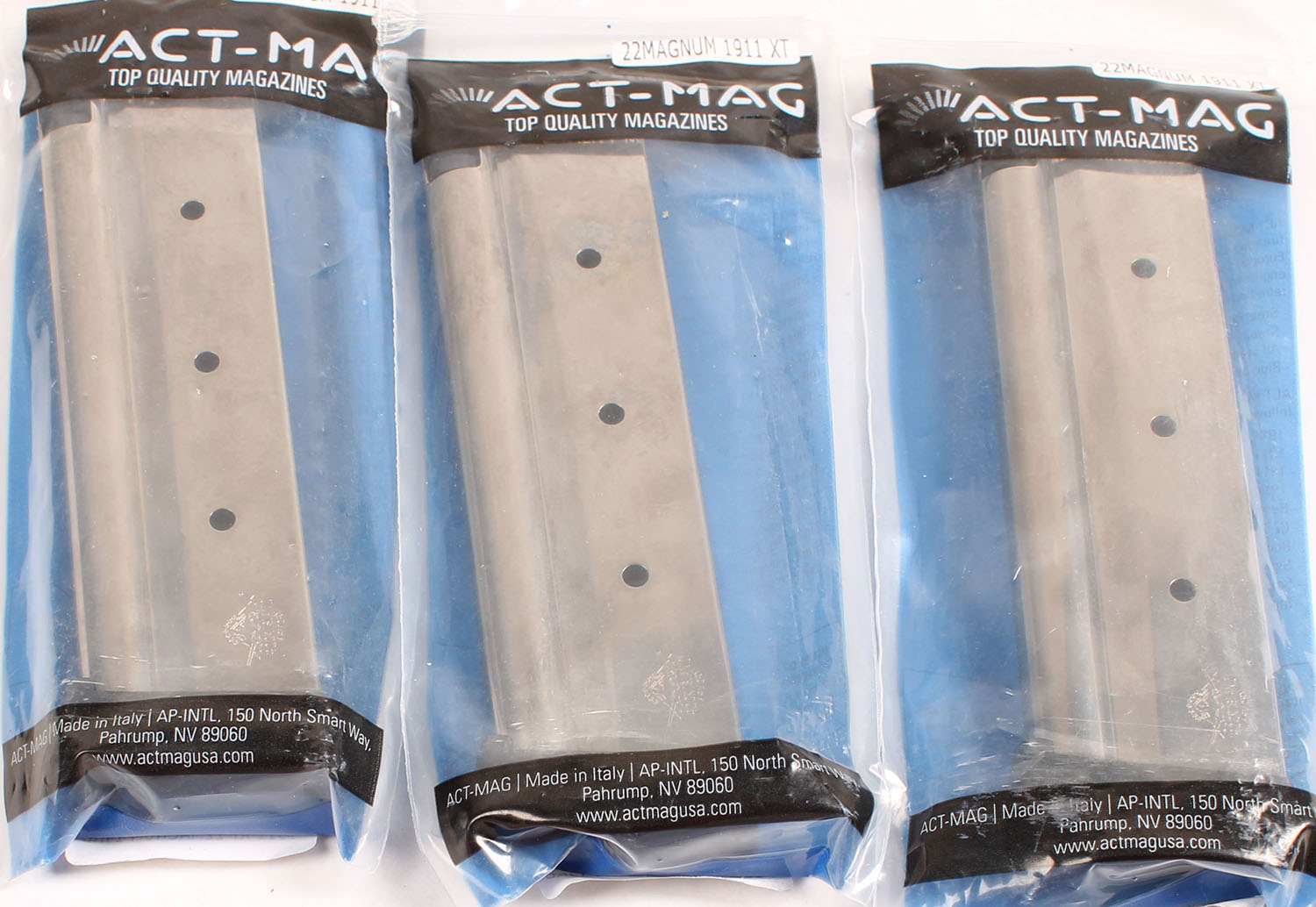 Lot of three, Rock Island Armory. M1911 XT .22 Mag, 14Rd. Mags, OEM mags all in ACT-MAG packaging. Grade: Excellent - Value: 40 to 120