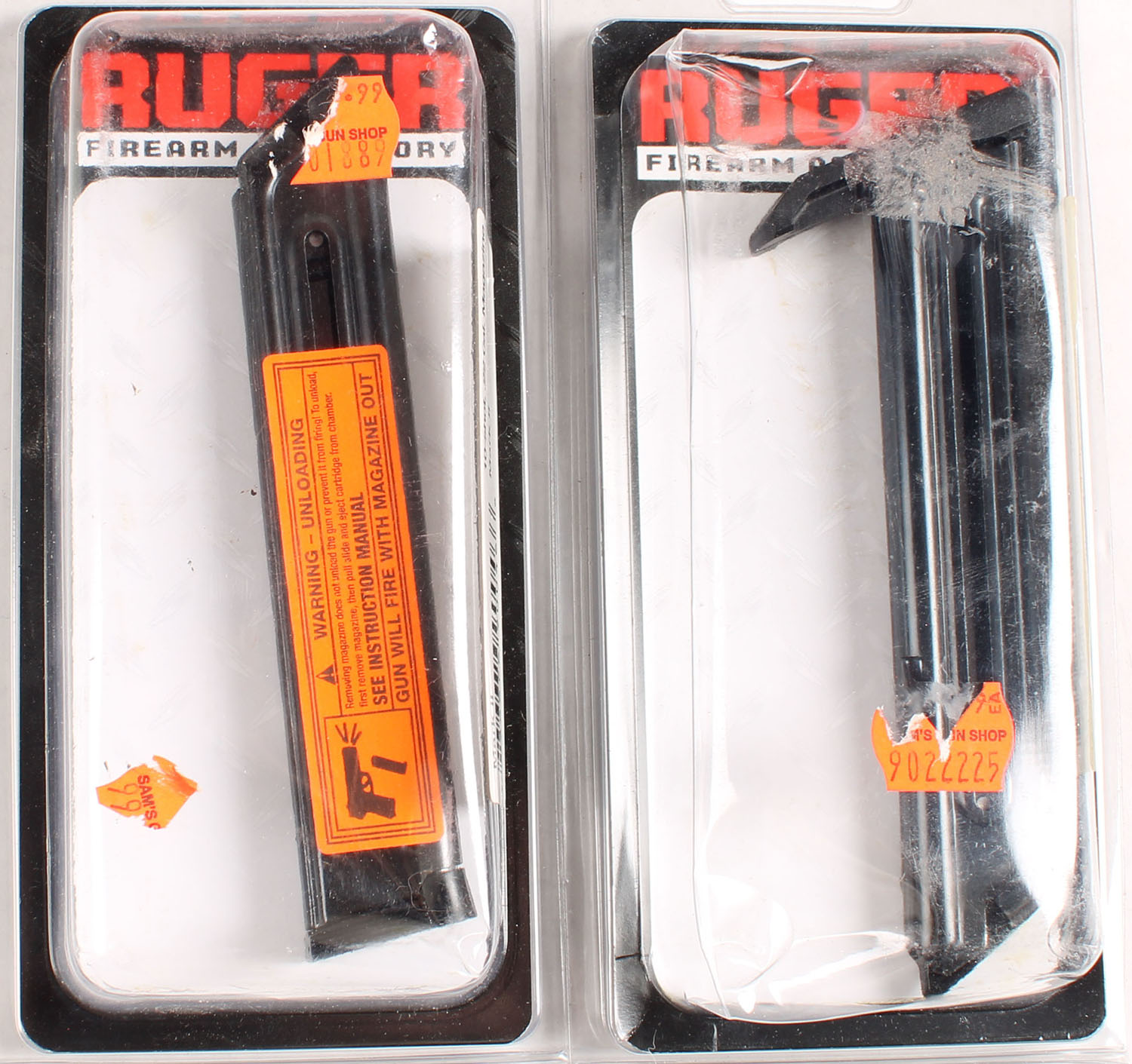 Lot of two, Ruger .22LR 10 Rd. mags, one for a mark II & the other for a 22/45 Mark III. Both in original packaging. Grade: Excellent - Value: 30 to 60