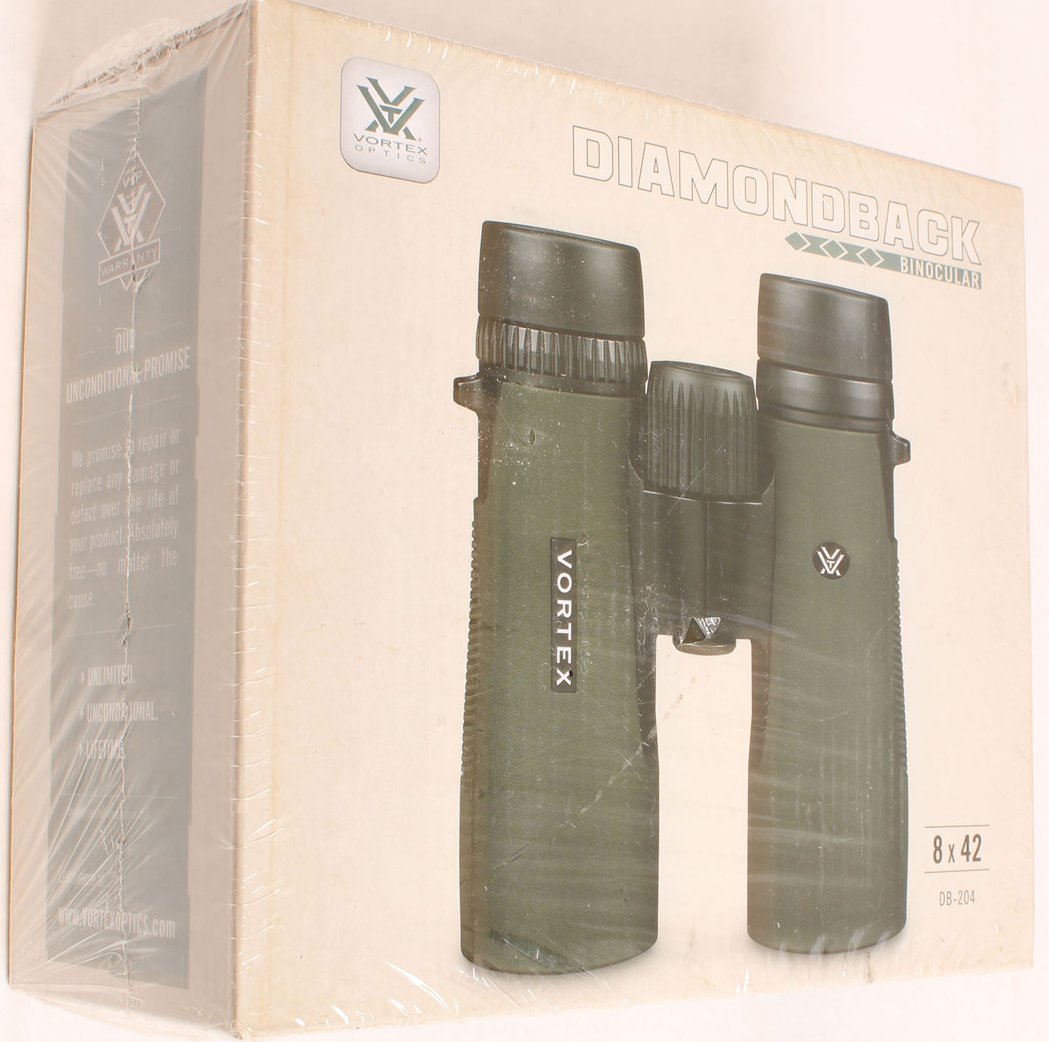 Vortex, Diamondback, 8x42 Binocular, NIB, comes with carrying case, neck strap, rain guard eyepiece cover, tethered lens covers, and lens cleaning cloth. Grade: MINT - Value: 50 to 200