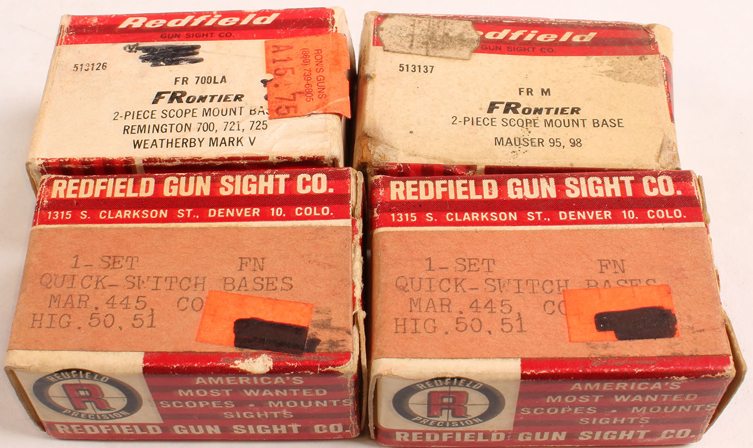 Lot of 4 Redfield scope mount in orignal package. Grade: Excellent - Value: 4 to 40