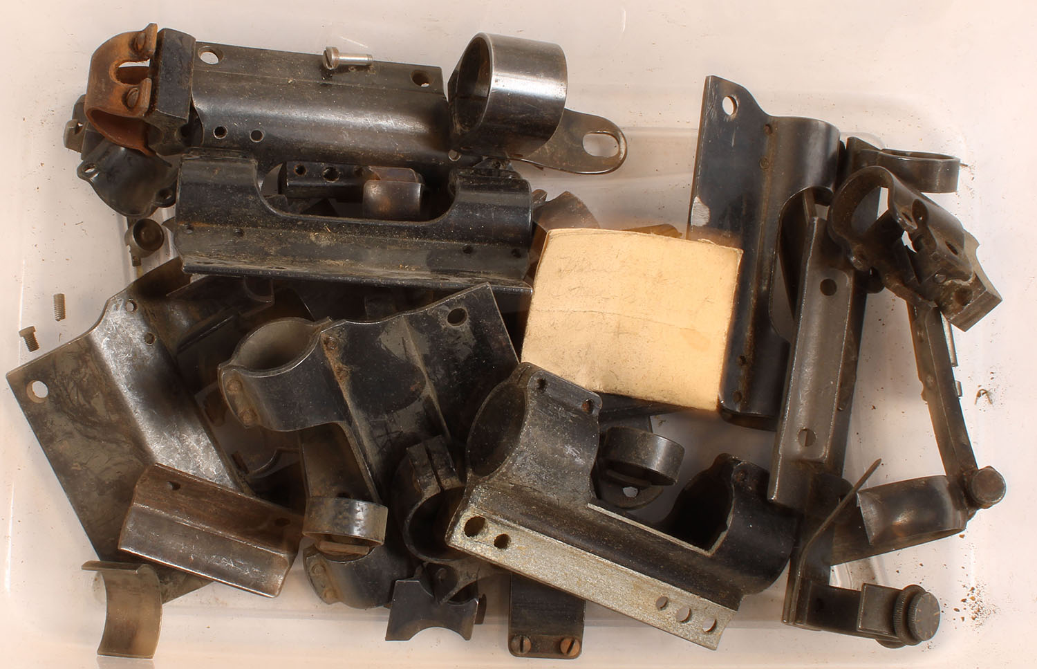 Lot of gun parts, lots of old scope mounts. Grade: Very Good - Value: 10 to 100