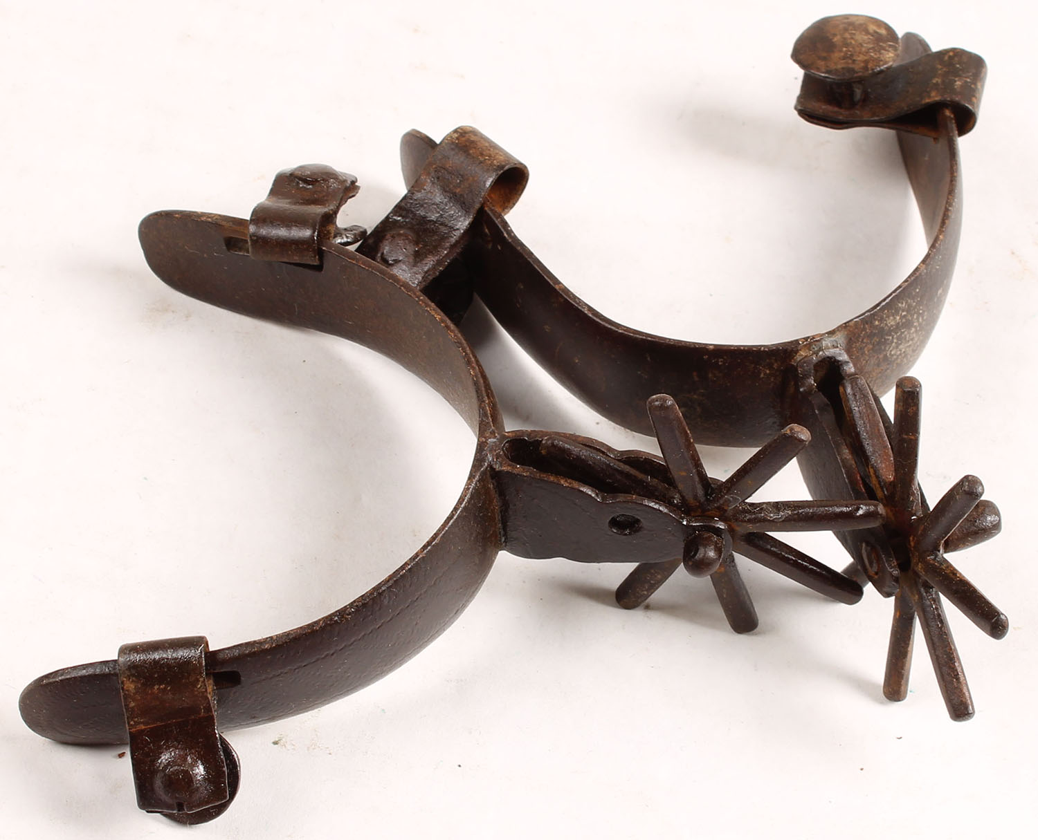Pair of antique metal spurs, have some rust. Grade: Very Good - Value: 20 to 200