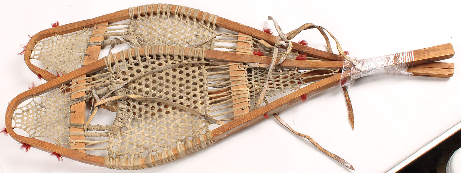 Antique snowshoe, 33'' OAL, solid with some age soiling. Grade: Excellent - Value: 20 to 100