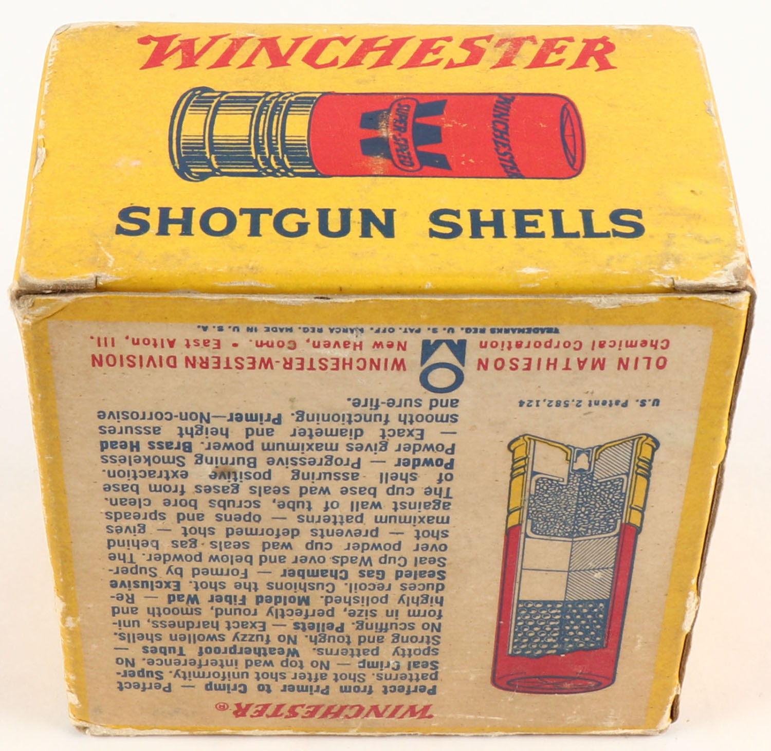 Winchester, Super Speed, 12ga., 2 3/4'', 1pc., Full with 13rds. Being correct, shot size 4, red, white & yellow box, box has light scuffing & light edge wear with great colors, shells are excellent. Grade: Very Good - Value: 10 to 30