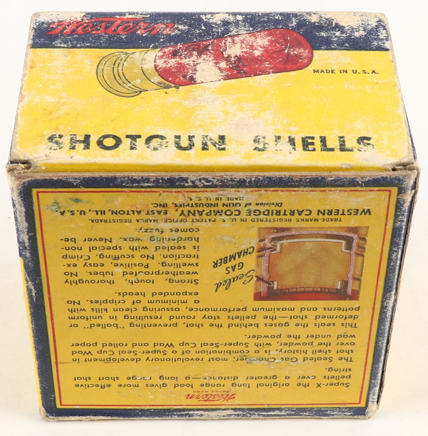 Western, Super X, 16ga., 1pc., Full, shot size 4 Lubaloy, 2 3/4'', multi-colored box, box has light scuffing & tear on top flap with great color, shells are excellent. Grade: Very Good ++ - Value: 10 to 30