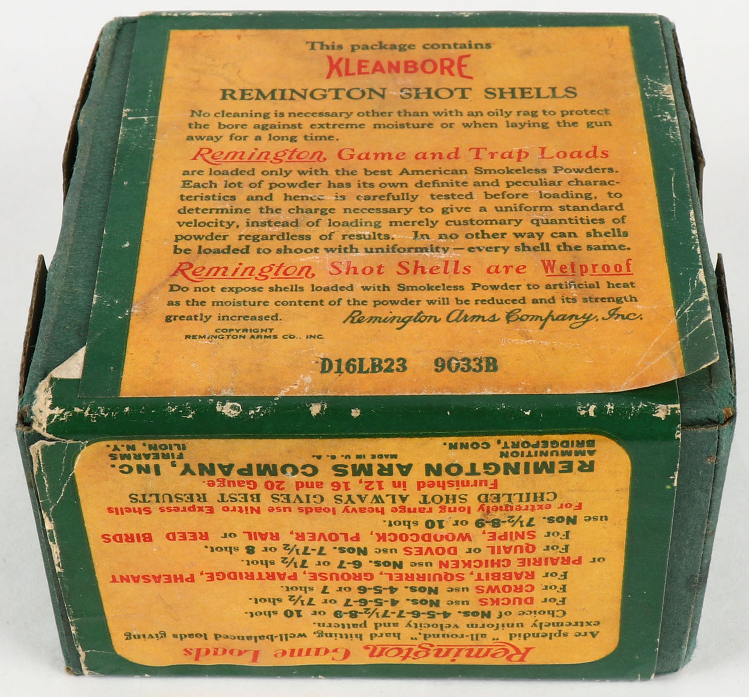 Remington UMC Nitro Club, GAME LOADS, 12ga, 2pc., FULL & SEALED, shot size 6CH, green box with sunburst logo & a variety of animals on the side, box has minor age soiling with excellent colors. Grade: Excellent ++ - Value: 100 to 500