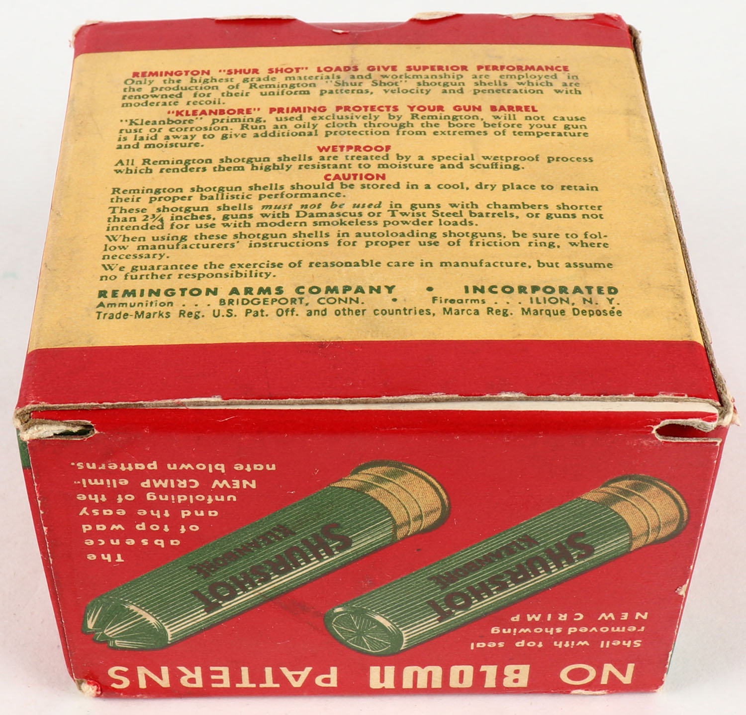 Remington Shur Shot Shells, Target Loads, 20ga., 1pc., Full, shot size 9, red and green box, 2 3/4'', box is very solid, paper shells are excellent. Grade: Excellent ++ - Value: 10 to 30