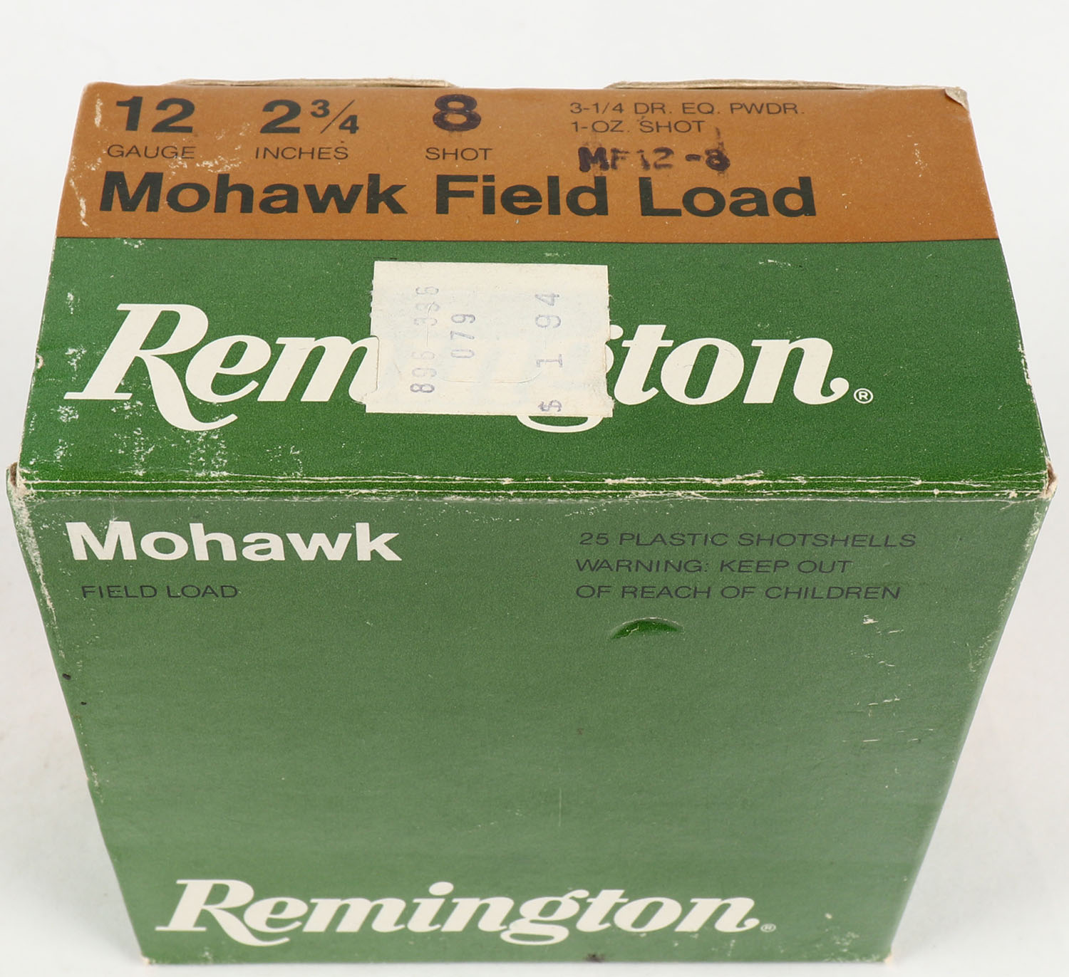 Remington, Mohawk Field Load, 12ga., 1pc., Full, shot size 8, multi-colored box, plastic shells are minty. Grade: Very Good ++ - Value: 10 to 20