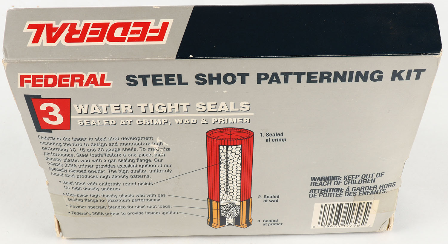 Federal, Steel Pattering KIT, 12ga., 2 3/4'', 1pc., Full, shot sizes BB,1,2,3, multi-colored box, KIT includes Pattern Targets, Brochures, etc. Grade: Very Good - Value: 20 to 100
