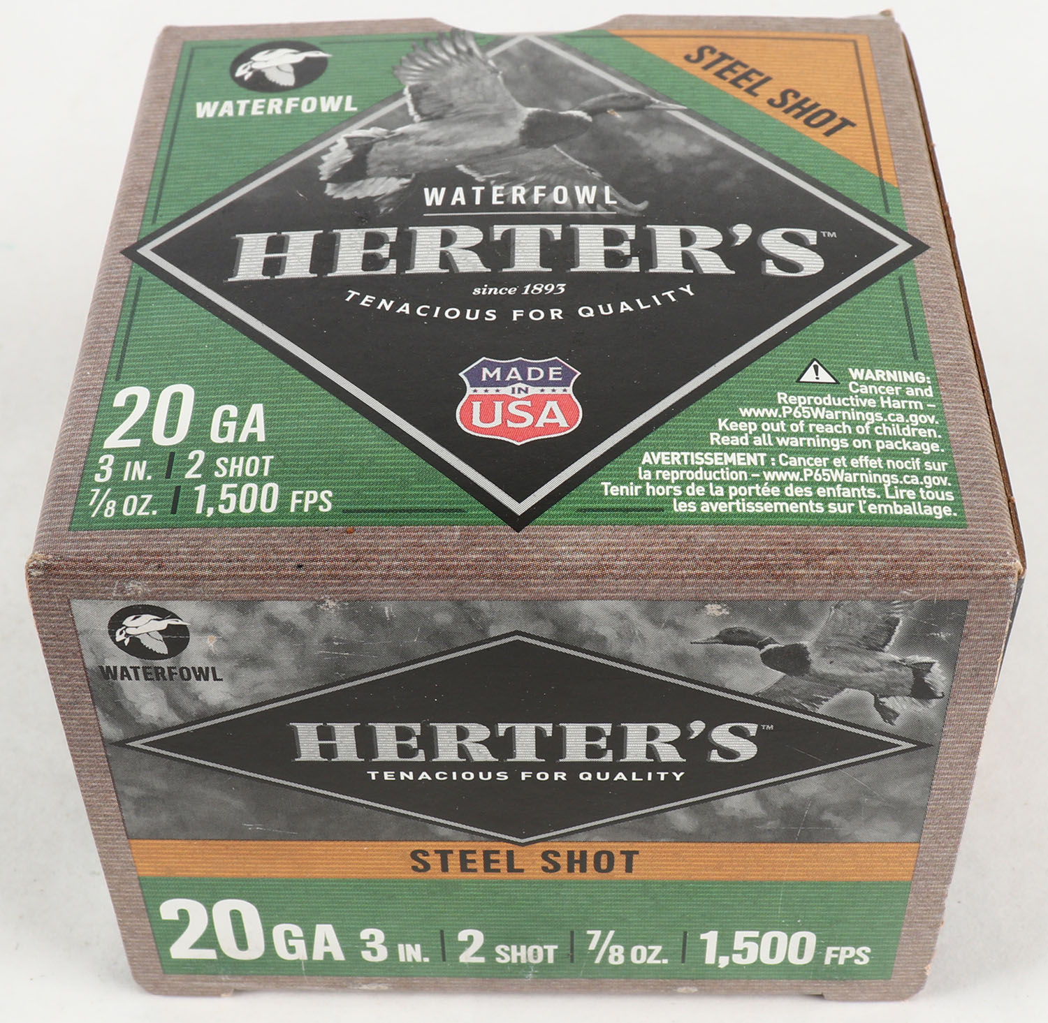 Herter's, Steel Shot, 20ga., 1pc., 3'', shot size 2, Full, multi-colored box, box is very solid with excellent colors, plastic shells are very good. Grade: Excellent - Value: 10 to 40