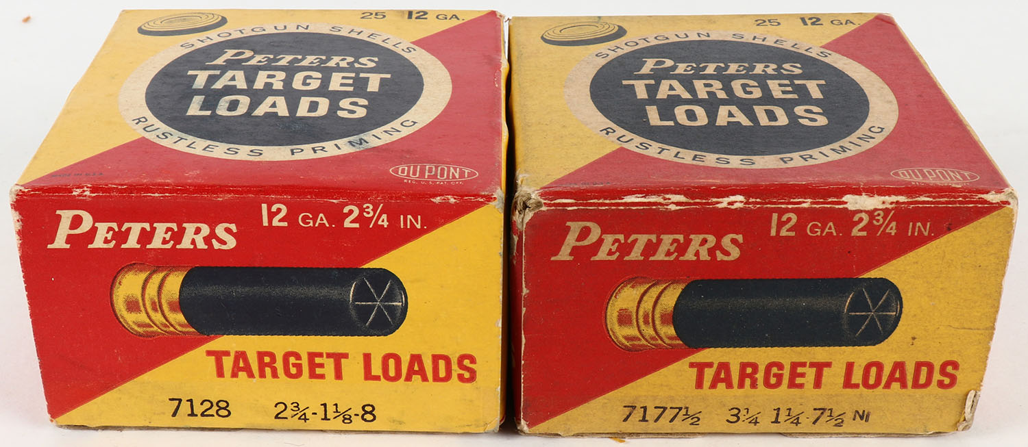 Lot of 2 Peters, 12ga., 1pc., Appears full, shot size 7 1/2 & 8, multi-colored boxes. Grade: Very Good ++ - Value: 10 to 50