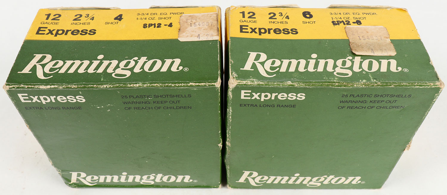 Lot of 2 Remington, 12ga., 1pc., Appears Full, shot size 4 & 6, multi-colored boxes. Grade: Very Good - Value: 10 to 40