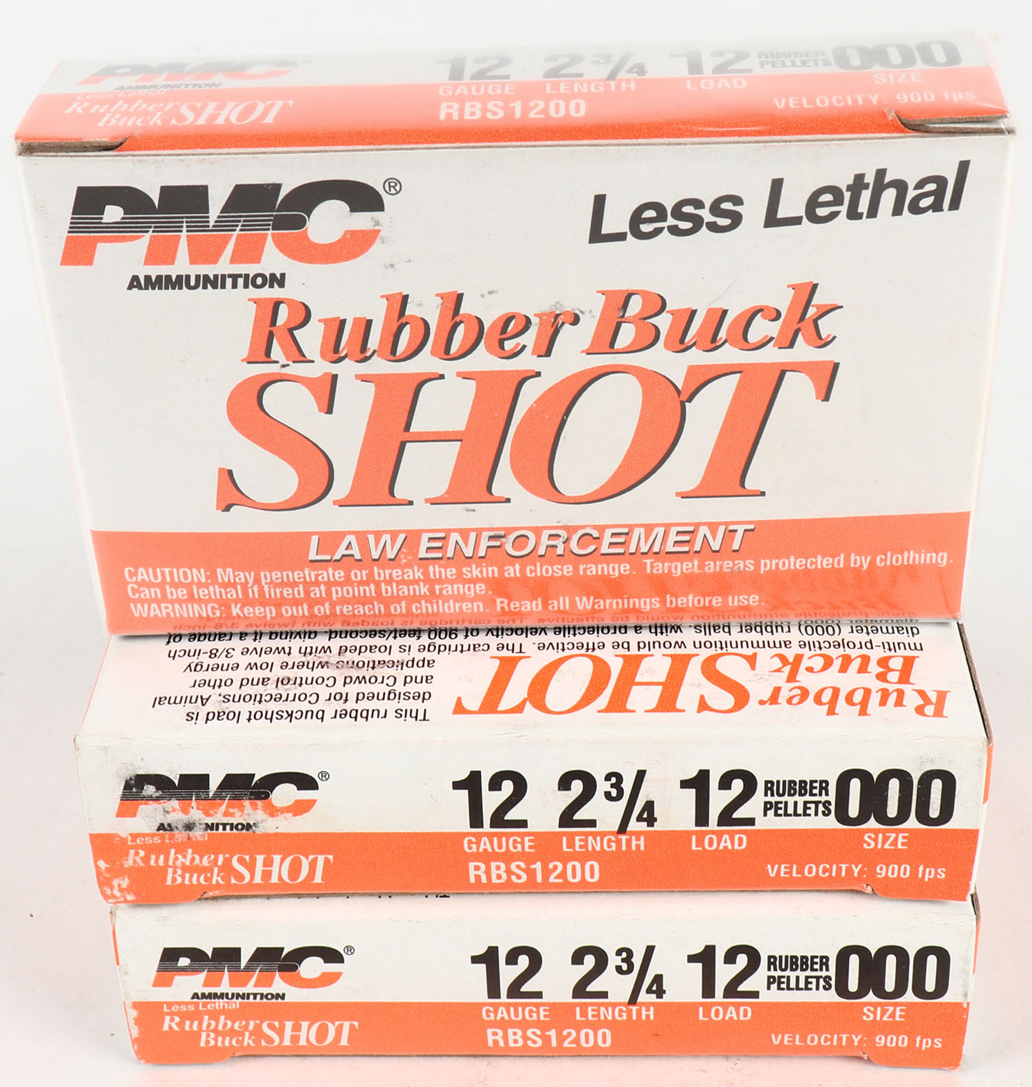 Lot of 3 PMC, 12ga., 1pc., Appears Full, shot size Rubber Pellets 000, multi-colored boxes. Grade: Excellent - Value: 10 to 30