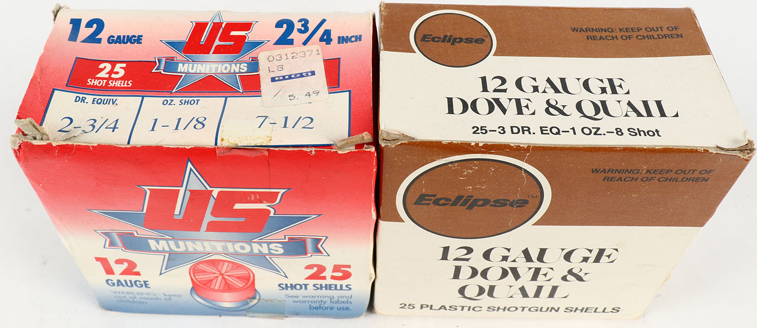 Lot of 2, Mixed Manufacture, 12ga., Appears Full, shot size 7 1/2 & 8, Shotshell boxes. Grade: Good ++ - Value: 10 to 30