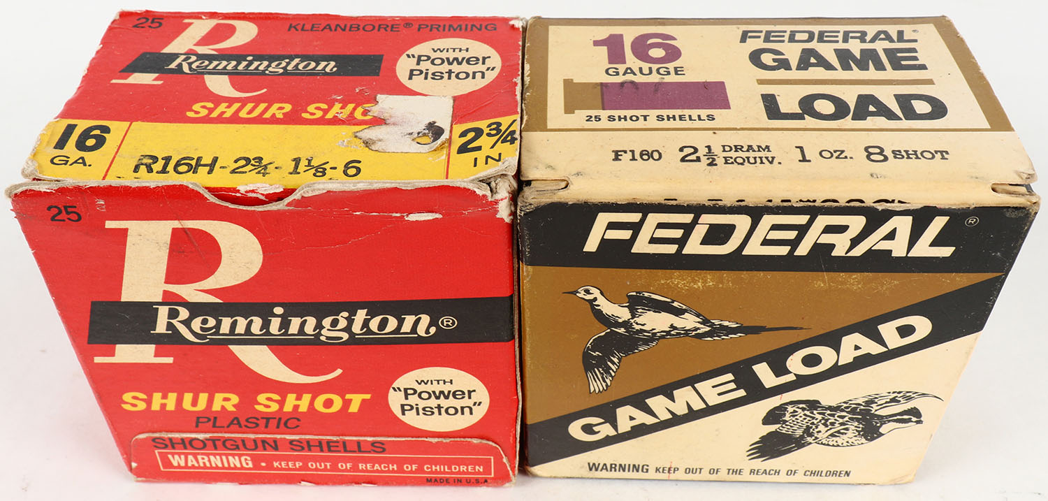 Lot of 2, Mixed Manufacture, 16ga., Appears Full, shot size 6 & 8, Shotshell boxes. Grade: Good ++ - Value: 10 to 30