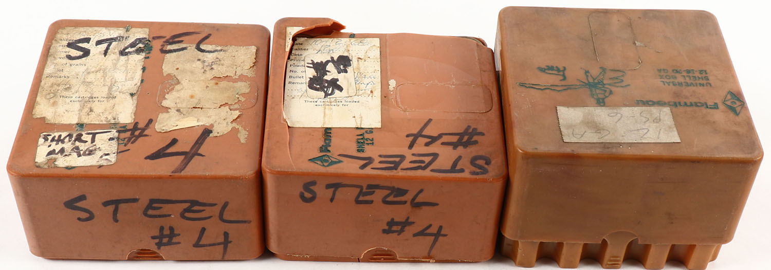 Lot of 3 Mixed Manufacture, 12ga., Appears Full, Shot size 6, Shotshell plastic boxes. Grade: Good ++ - Value: 10 to 40