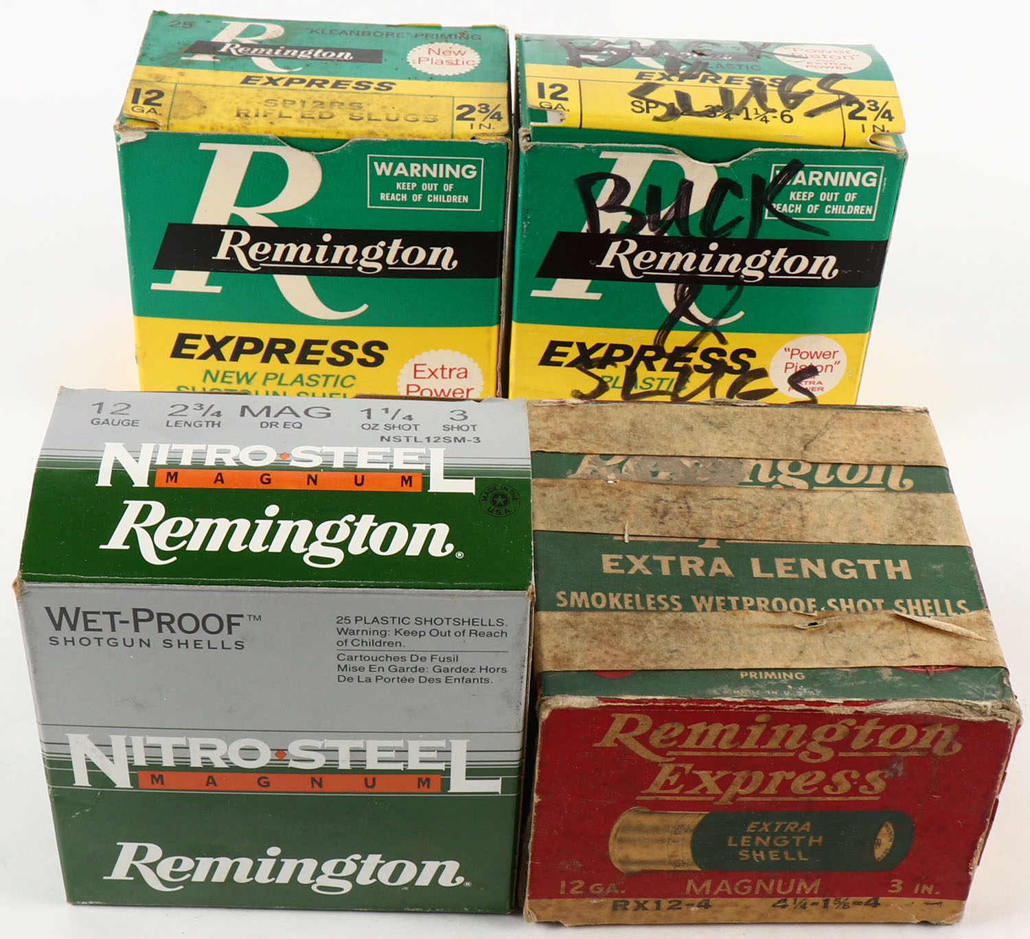 Lot of 4 Remington, 12ga., Appears Partial, Shotshell Boxes. Grade: Good - Value: 10 to 30