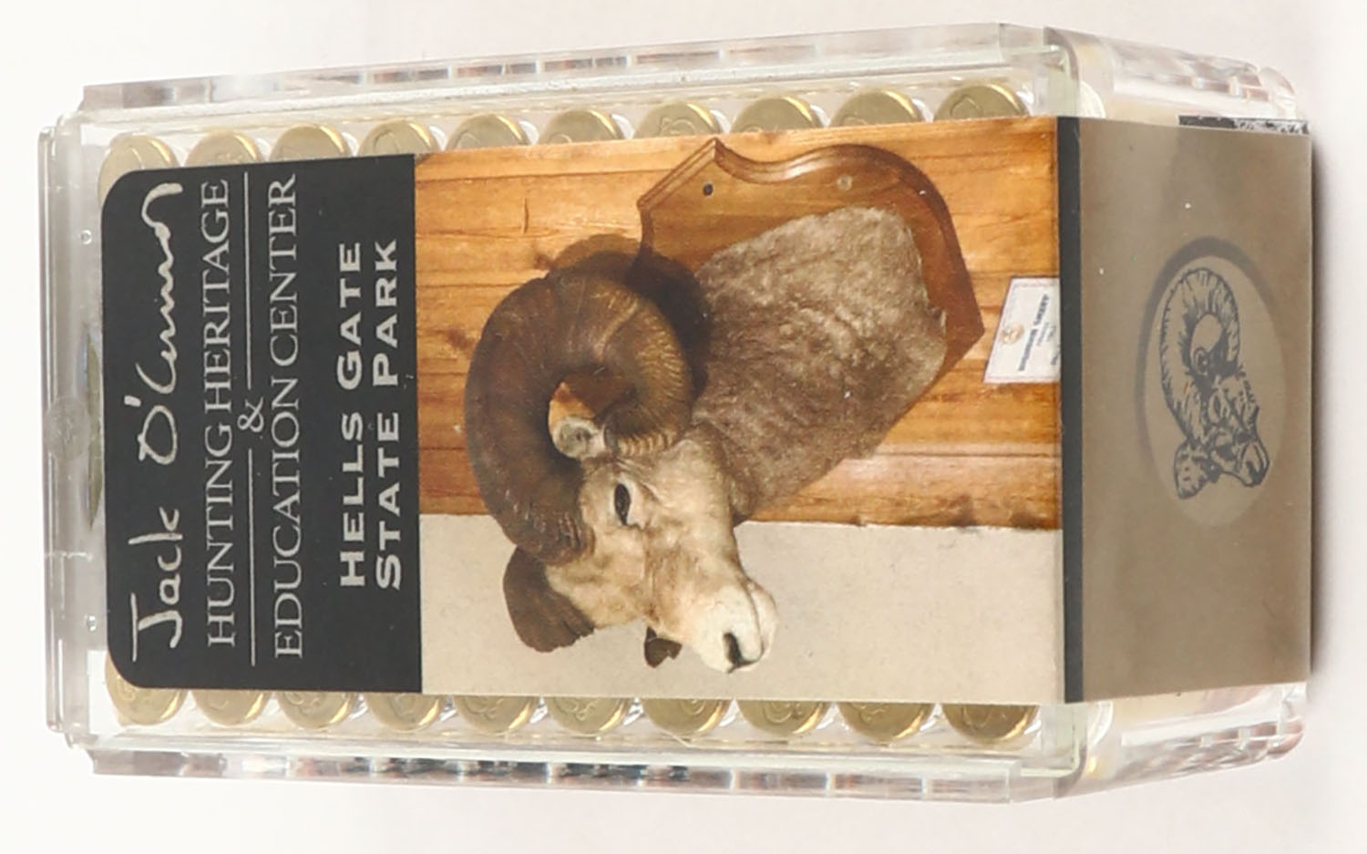 CCi, Jack O'Connor Hunting Heritage & Education Center - Hells Gate State Park, .22 Long Rifle, FULL & SEALED, 2pc. Clear plastic tray with label features bighorn trophy, tray is clean & clear, label is intact with minty color. Grade: MINT - Value: 30 to 90