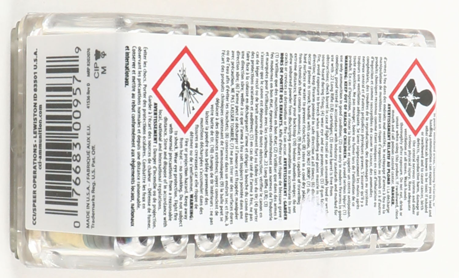 CCi, Suppressor, .22 Long Rifle Hollow Point, Subsonic, 45 Grain, 970 FPS, FULL & SEALED, 2pc. Clear plastic tray with blue sealing label, box is MINT with mint color, label is mint, ammo appears mint. Grade: MINT - Value: 8 to 40