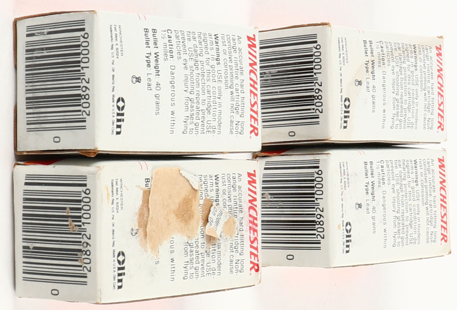Winchester, lot of (4) boxes, all appear full. Grade: Excellent - Value: 14 to 40