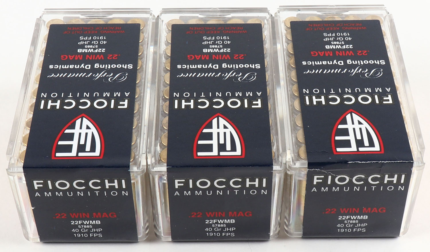 Fiocchi, lot of (3) boxes, all full & sealed. Grade: MINT - Value: 16 to 60