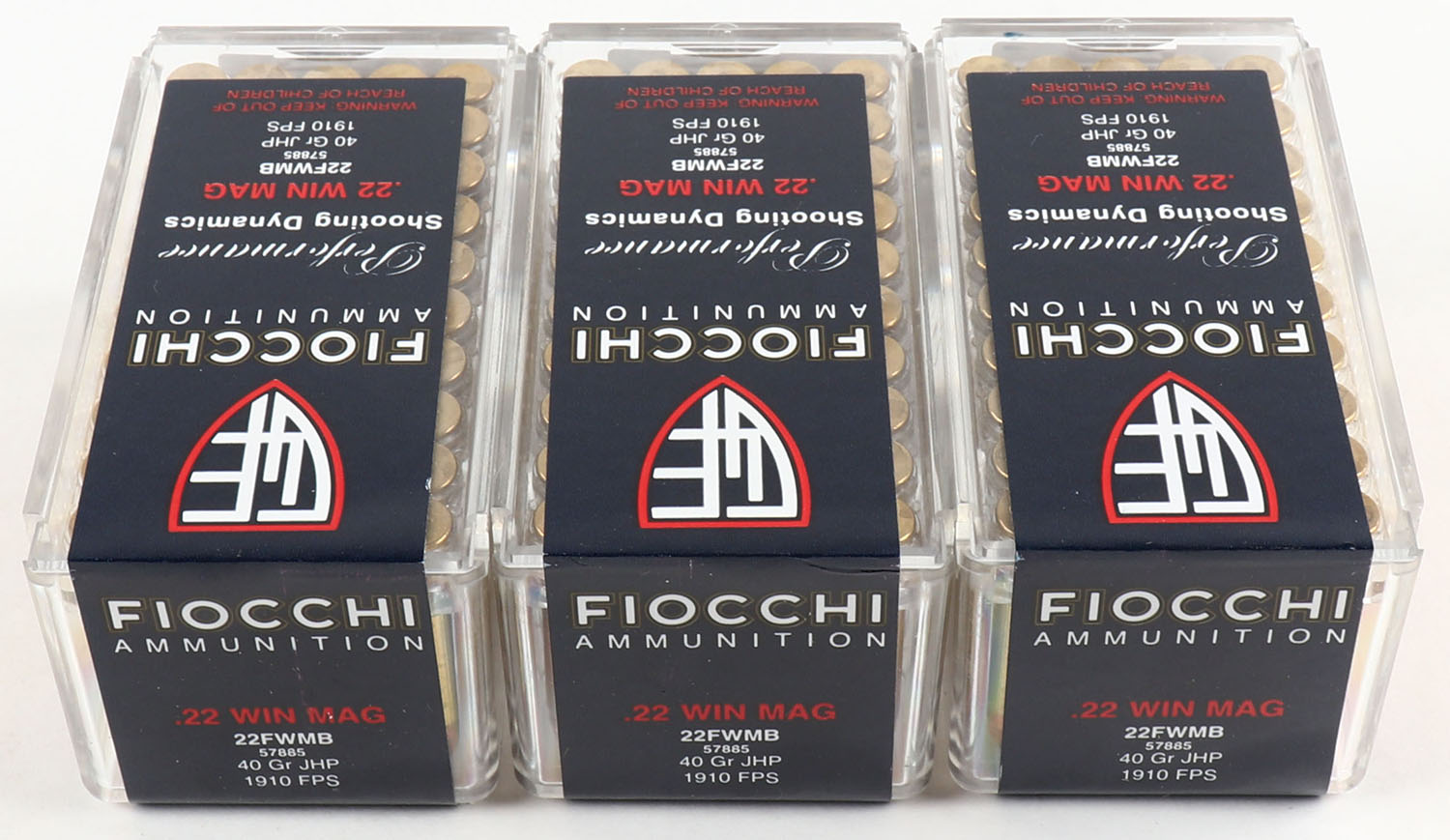 Fiocchi, lot of (3) boxes, all full & sealed. Grade: MINT - Value: 16 to 60