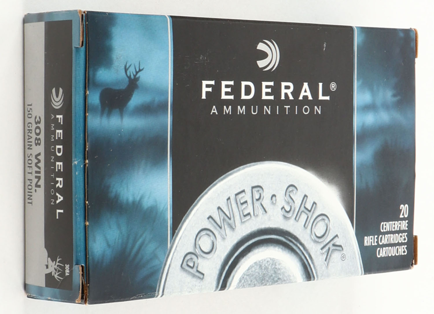 Federal, Power Shok, .308 Win., 150 Grain Soft Point, Full, 1pc. multi-colored box, box is solid with excellent color, ammo is excellent. Grade: Excellent ++ - Value: 20 to 60