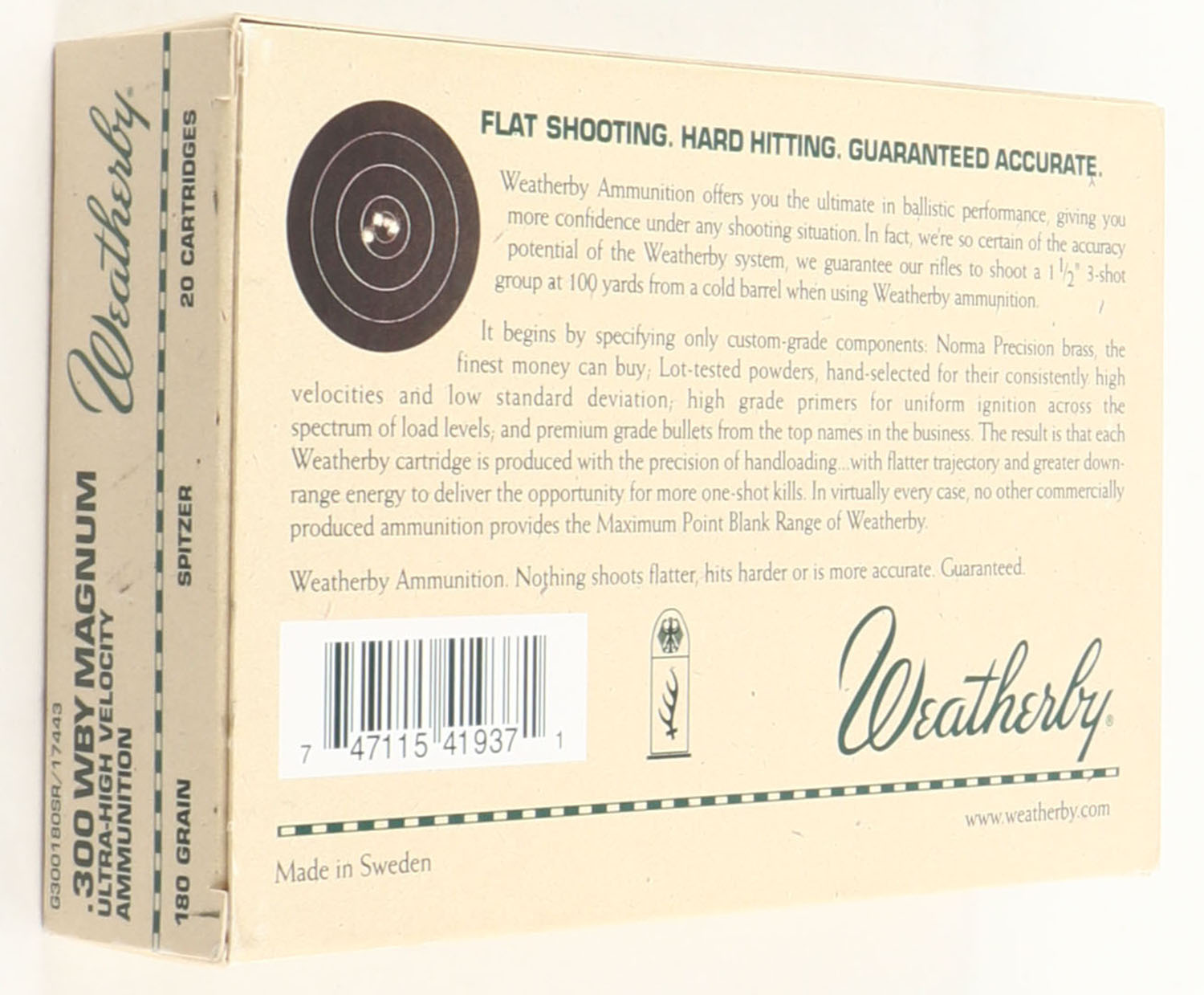 | Weatherby, .300 Weatherby Magnum, 180 Grain Spitzer, Full, 1pc.,...