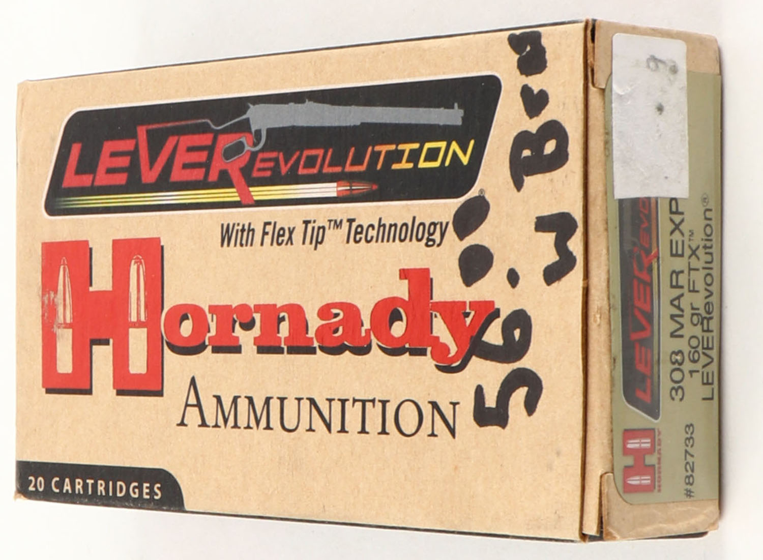 Hornady, LeverEvolution, 308 Mar EXP, 160 Grain FTX, Full, 1pc. multi-colored box, box is solid with excellent color, Ammo is excellent. Grade: Excellent ++ - Value: 20 to 60