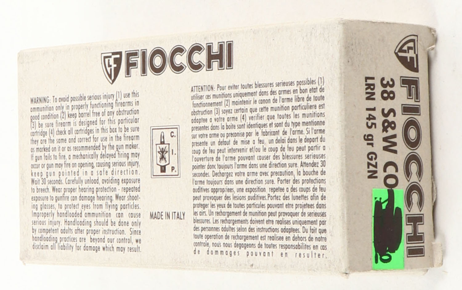 | Fiocchi, .38 Smith & Wesson, 1pc, Full, gray box with brown lab...