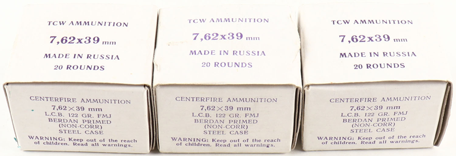 | TCW Ammunition, Lot of (3), 7,62x39mm, 122 Grain HP, Steel Case,...