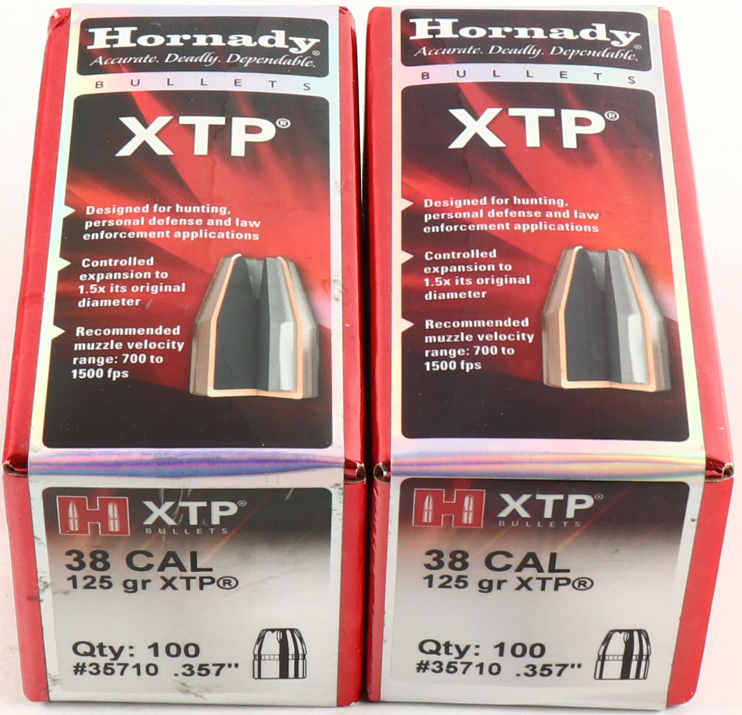 Hornady, XTP, Lot of (2), .38 Cal., 125 Grain, .357'' Dia., FULL & SEALED, 2pc, boxes are minty. Grade: MINT - Value: 20 to 80