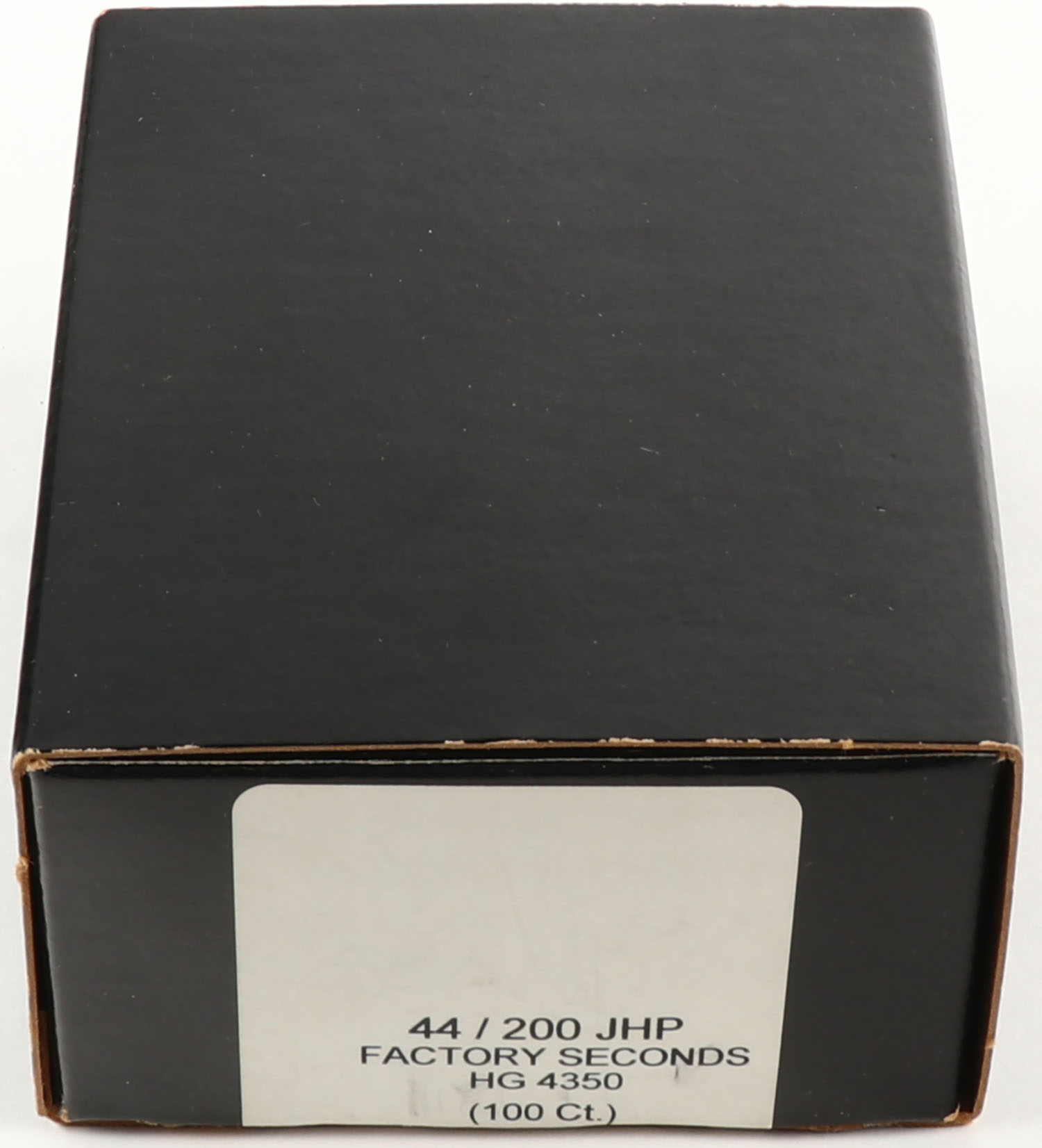 Nosler, 44 Cal, 200 Grain JHP, Factory seconds HG 4350, Full, 2pc, black box is very solid, bullets are minty. Grade: Excellent ++ - Value: 10 to 60
