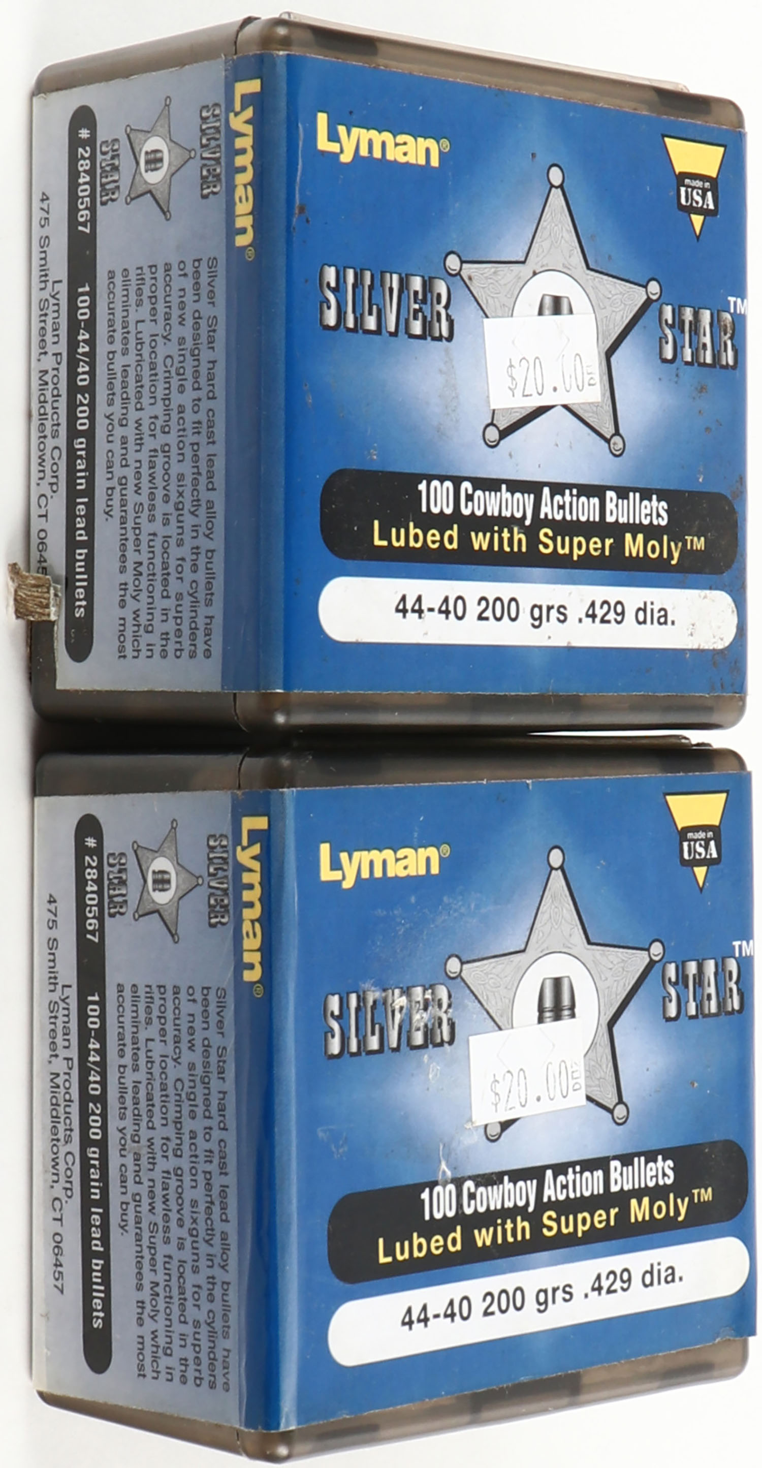 Lyman, Silver Star, 44-40, 200 Grain .429'' Dia., FULL & SEALED, 1pc, Plastic box with multi-colored label, box is very solid. Grade: Excellent ++ - Value: 20 to 60