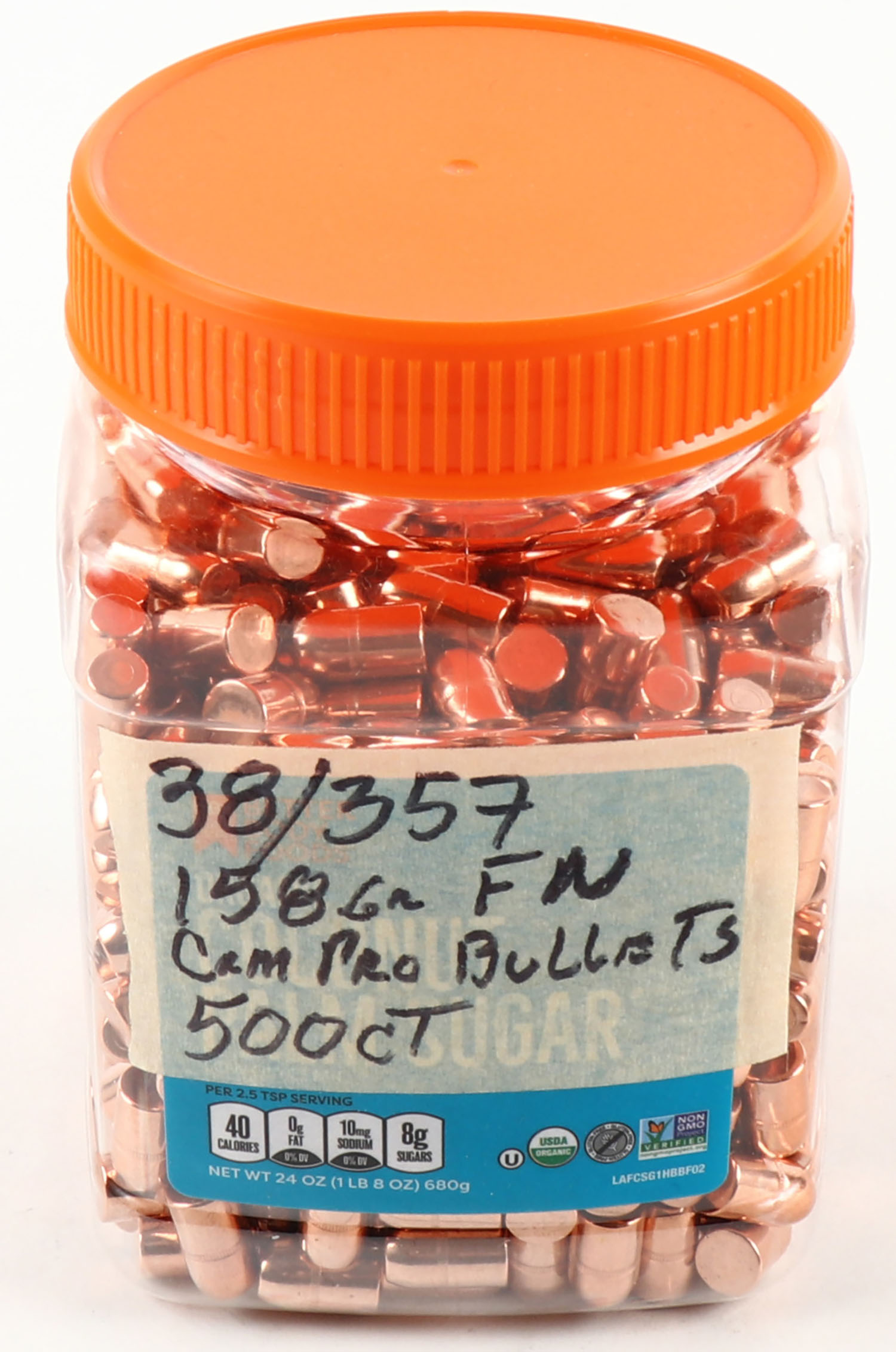 CamPro Bullets, 38 Cal., 158 Grain FN .357'', 500ct, bullets are excellent. Grade: Excellent - Value: 8 to 40