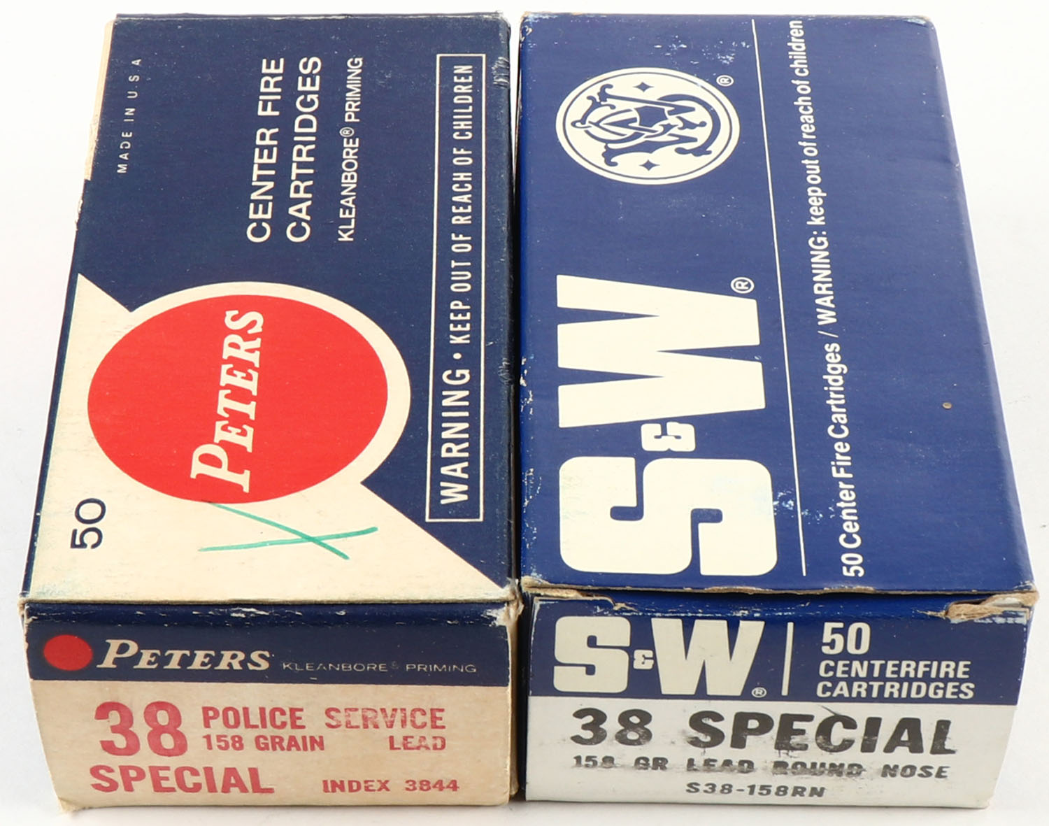 Lot of 2 boxes of 38 Spl, fired brass, (1) box Peters, (1) box S&W, brass is very good. Grade: Very Good ++ - Value: 10 to 100