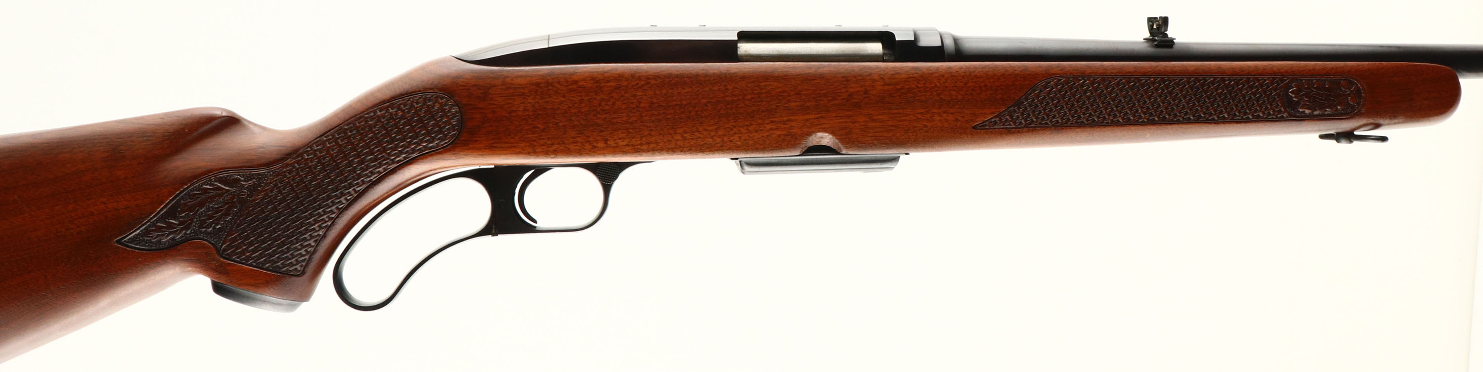 Winchester Model 88, CAL: 308 WIN, MFG: 1964, SN: 155811A, Lever Action Rifle, 22'' barrel. The original checkered & capped pistol grip wood stock is excellent. It displays almost no handling marks to the excellent original finish. The original metal blue finish is toning plum, with a 98% coverage. Bore is excellent. The barrel holds the original flip-up rear sight & a hooded ramp front sight. Stock carries a the original checkered buttplate. Factory sling swivels. Excellent overall & extremely collectible in this high original condition. FFL or C&R Req - Value: 1200 to 2500